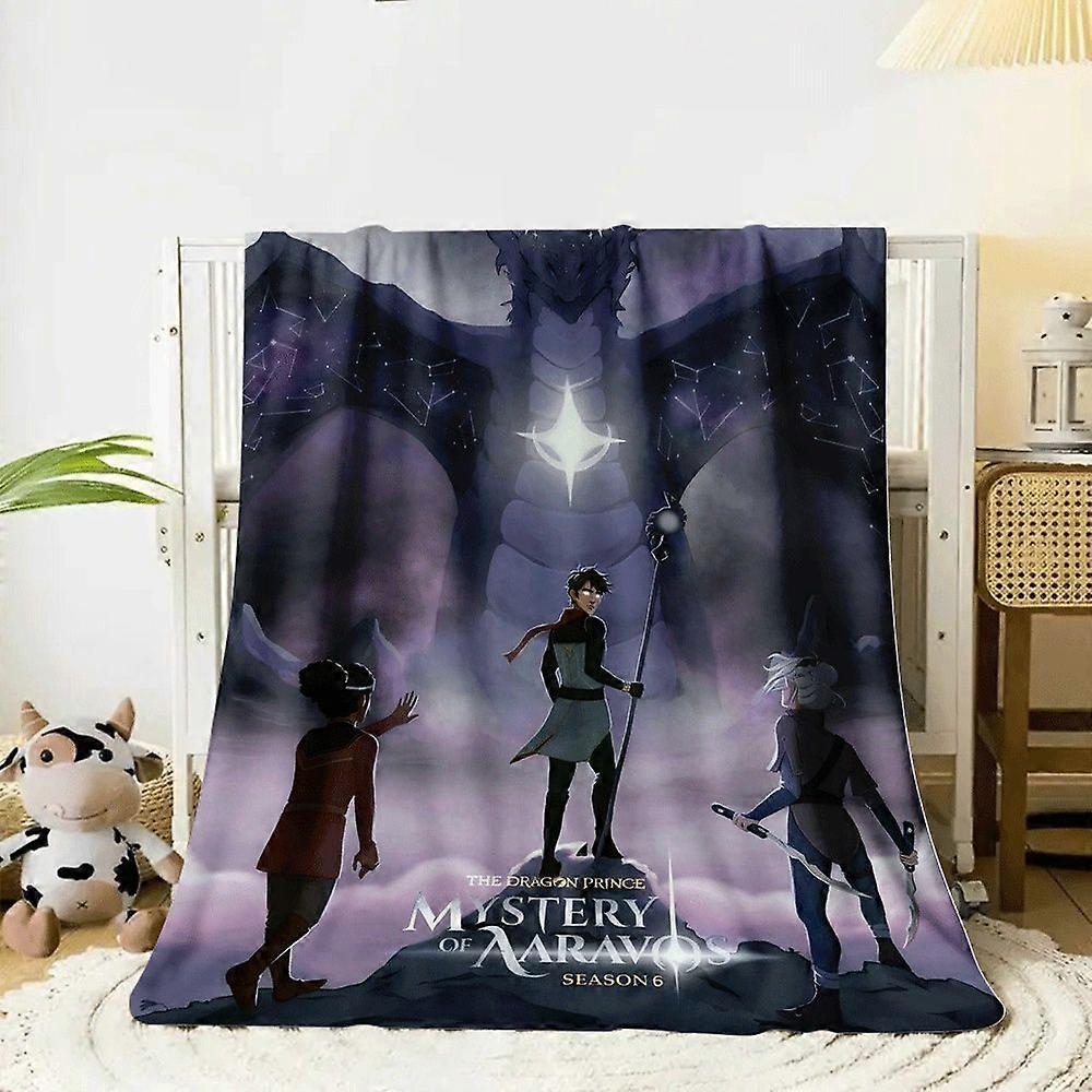 1pc The Dragon Prince Inspired Flannel Blanket - Characters & Dragons Fantasy Throw in Purple/Blue/Purple Palette - Soft-LMNBV87