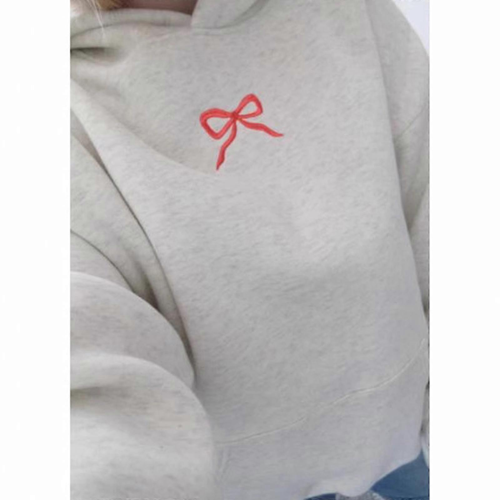 Women Floral Bowknot Pattern Hoodie Oversized Loose Pullover Top Aesthetic Streetwear Long Sleeve Graphics Sweatshirt Red XS