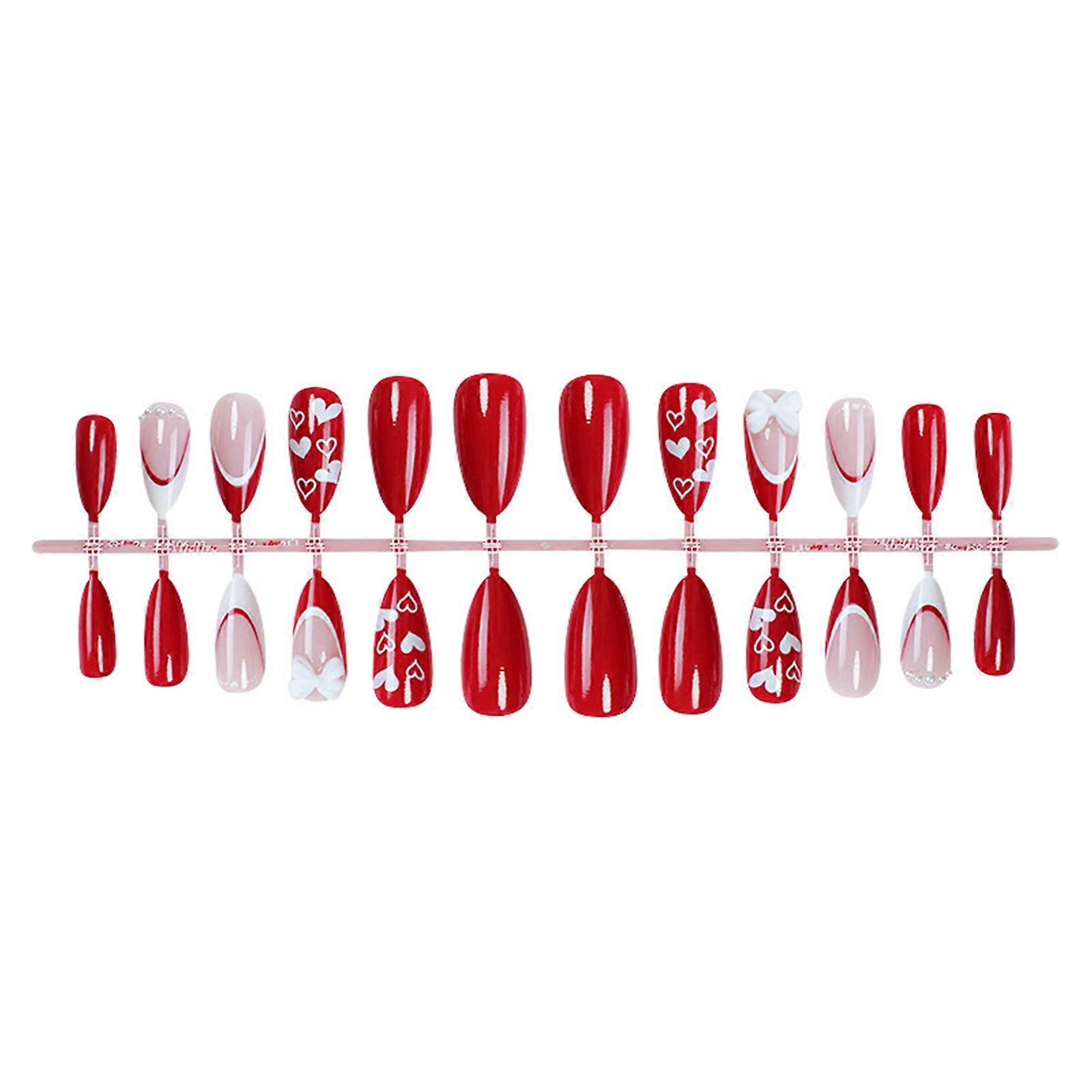 Press on Nail With Heart And 3D Bows Almond False Nail French Tip Artificial Nail For Celebrating Valentine's Day Multicolor