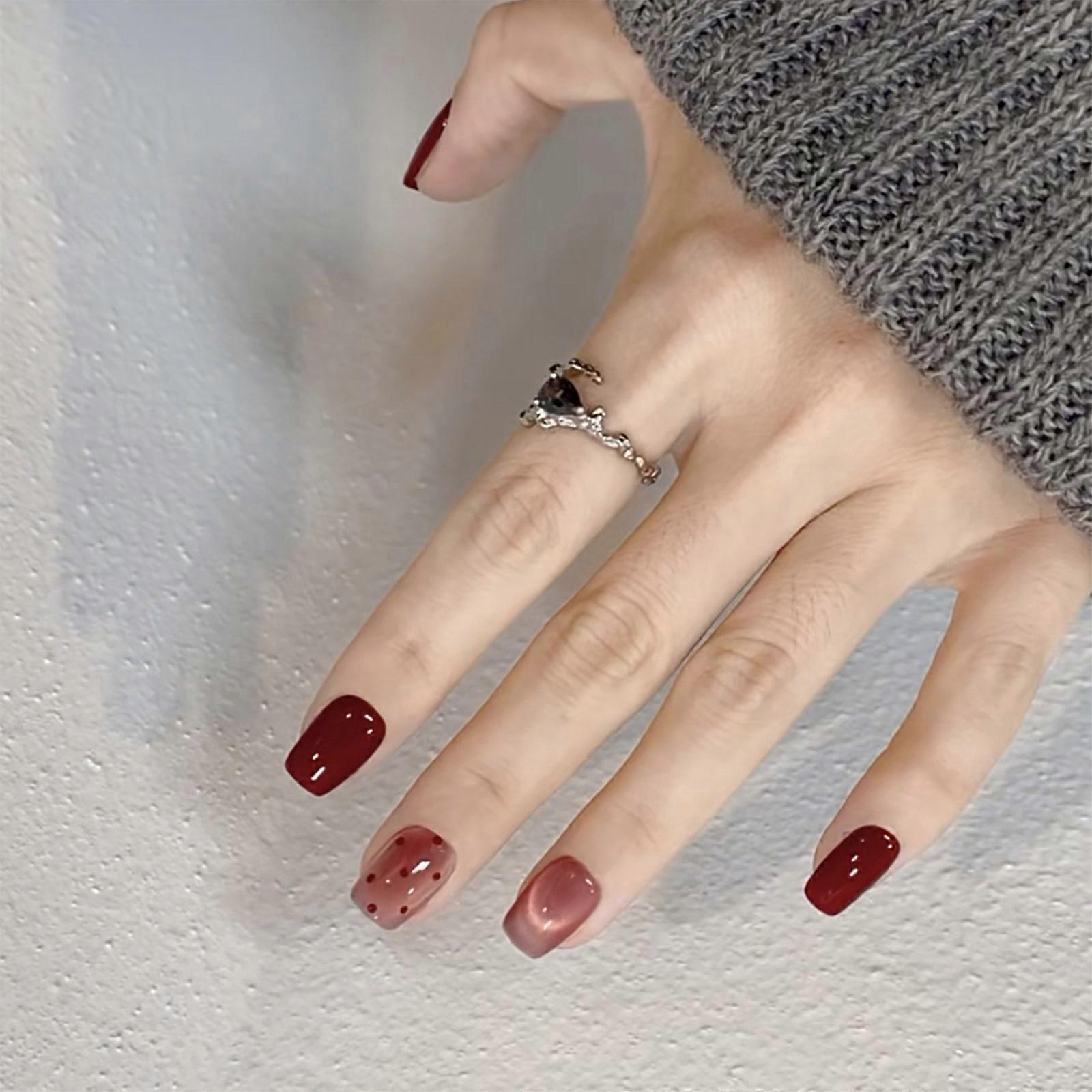 24 Pcs Polkas Dots Full Cover False Nail Elegant Stick on Nail Cats Eye Press On Nail Reusable Artificial Acrylic Nail Multicolor