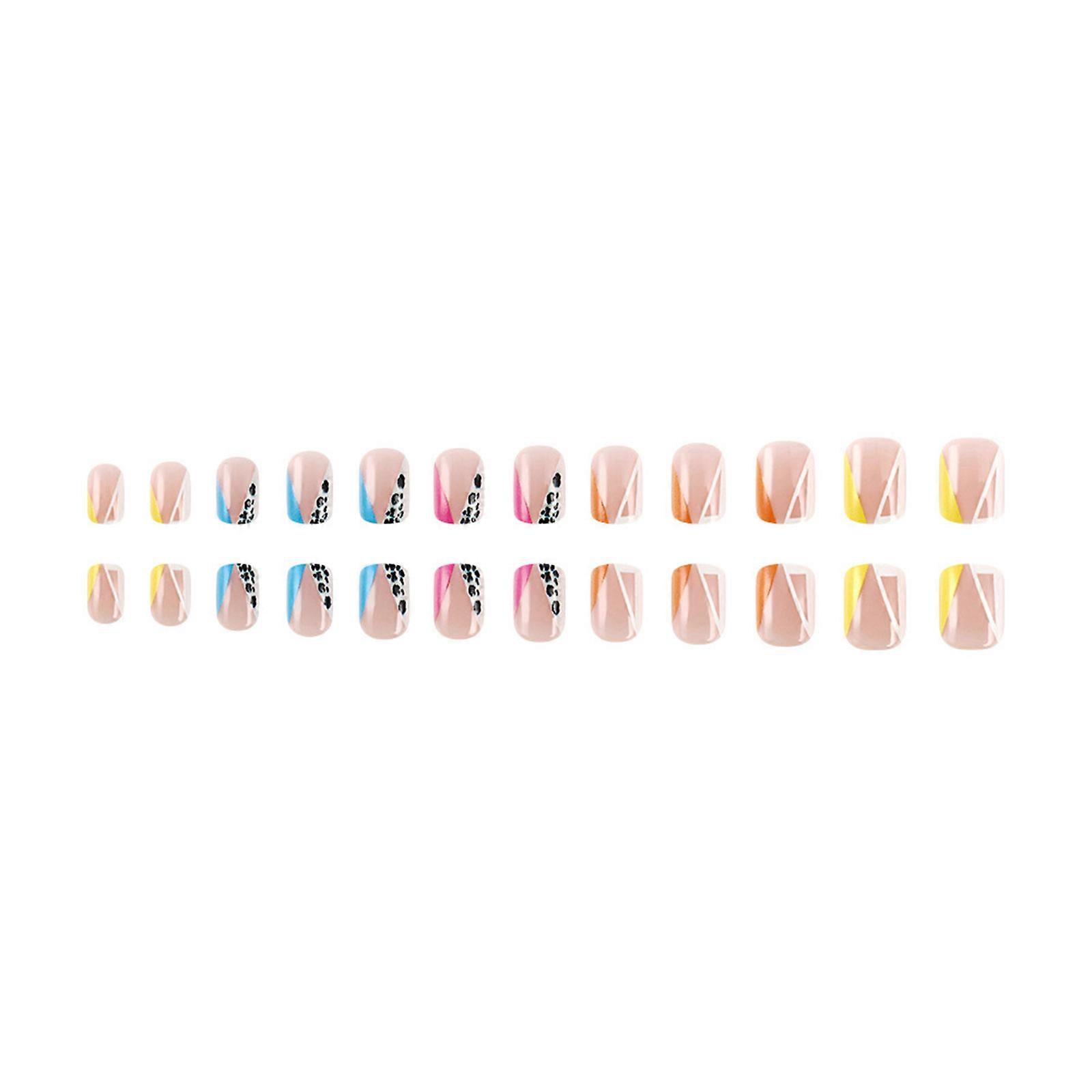 24 Pieces Short Square Leopard Designs False Nail Acrylic Artificial Nail Manicure Nail Accesories For Trendy Women Multicolor