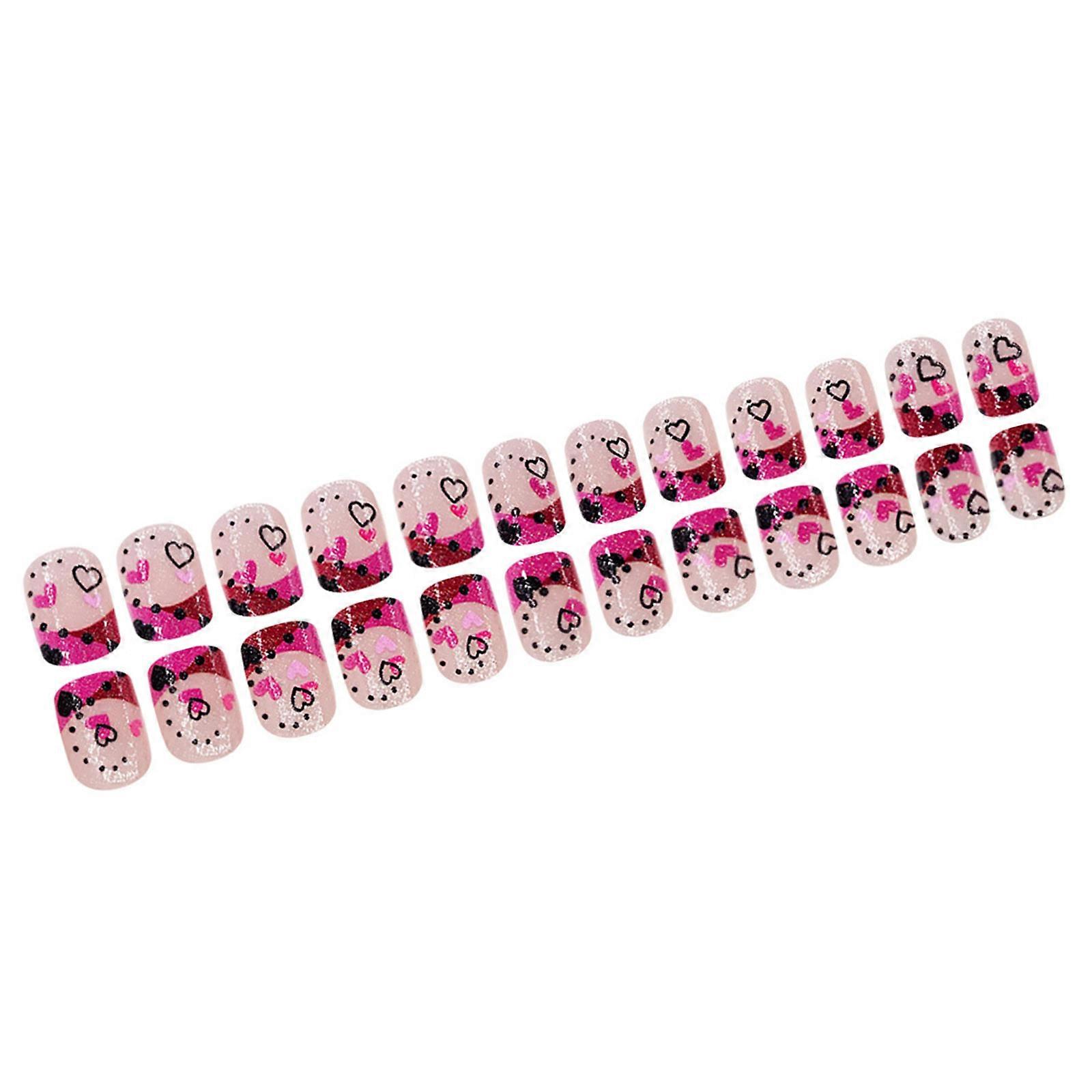 24 Pcs Valentines Day Stick on Nail French Tip False Nail Polkas Dots Heart Press On Nail Manicures Supplies Multicolor