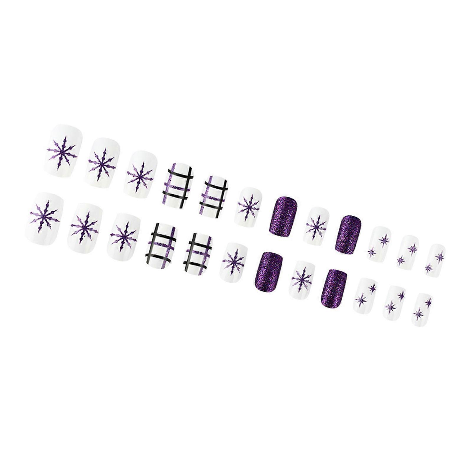 24 Pcs Snowflake False Nail Christmas Full Cover Stick on Nail Short Press On Nail Manicures Supplies for Winter Multicolor