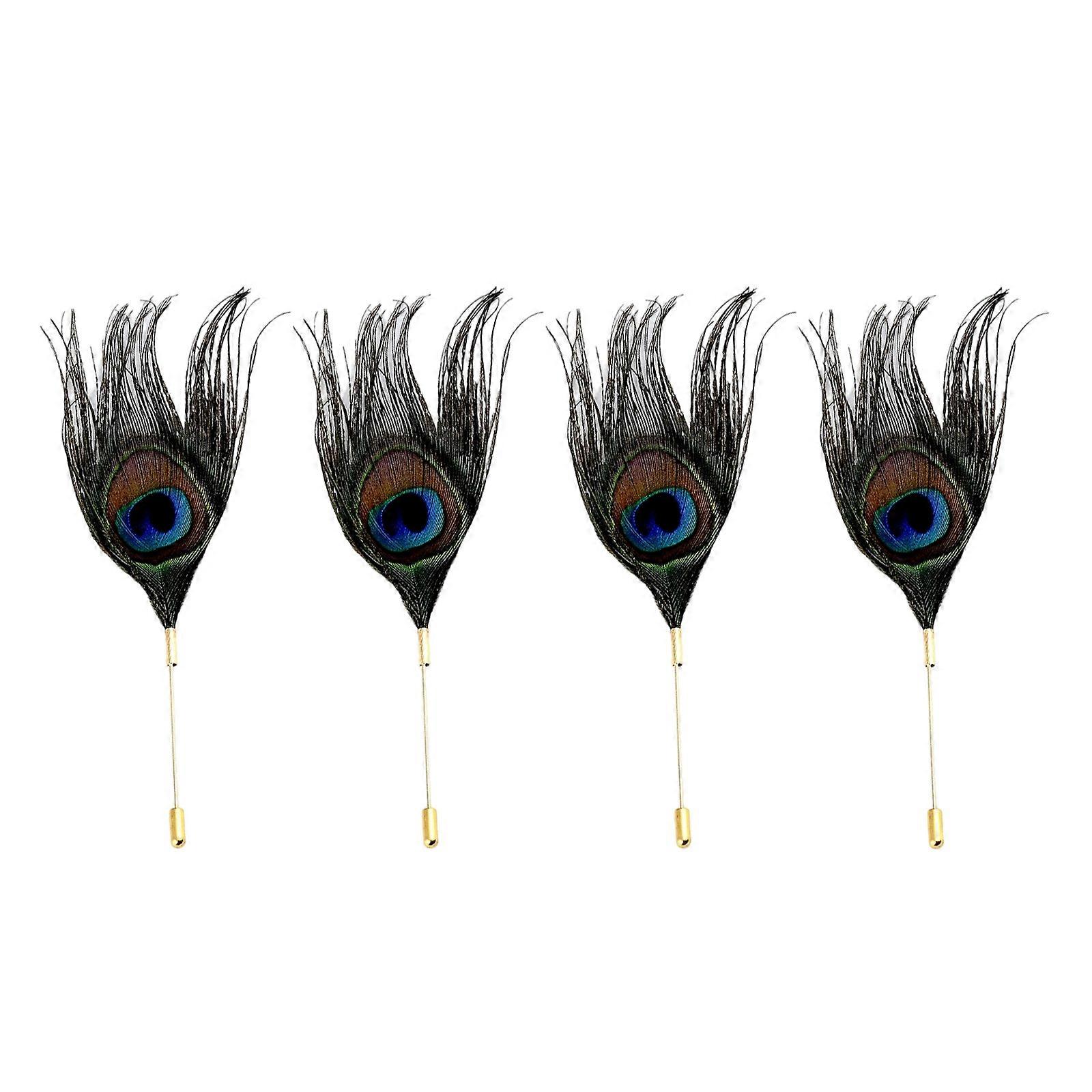 4Pcs Unique Peacocks Tail Feather Pin Peacocks Feather Brooches Sophisticated Dress and Coat Embellishments for Ladies Multicolor