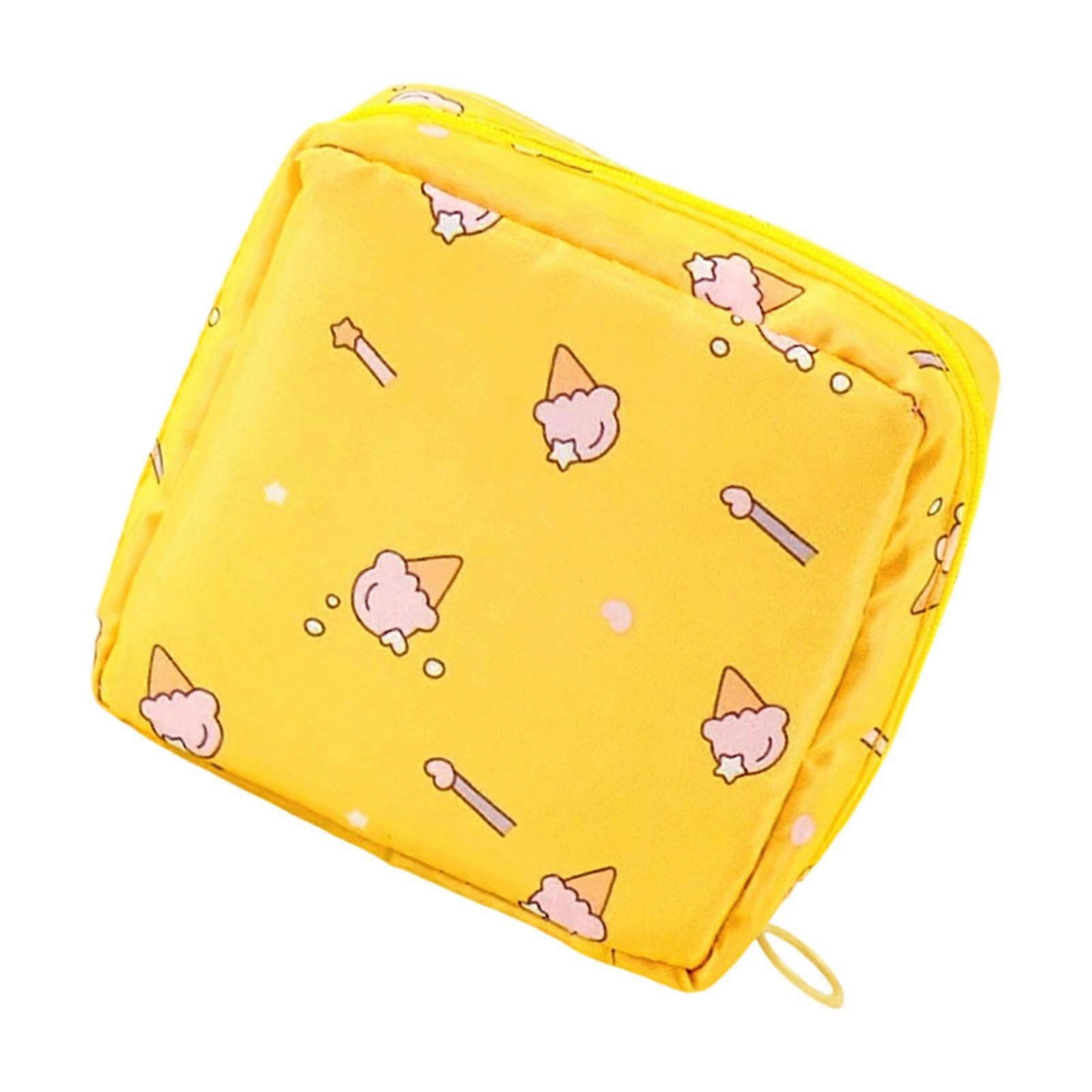 Multipurpose Women's Wallet for Period Supplies Practical Sanitary Pad Storage Bag for Organizing Personal Care Items Yellow ice cream