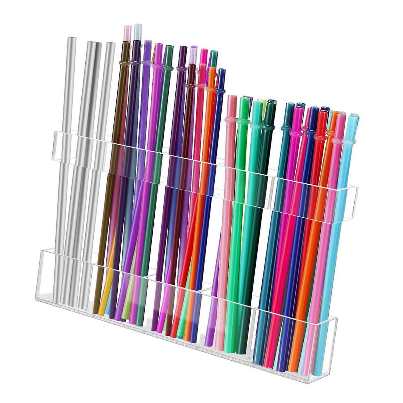 Space Saving Cabinet Mounted Straw Holder 9.8 Inch Clear Acrylic Design With Removable Stickers For Home Organization Multicolor