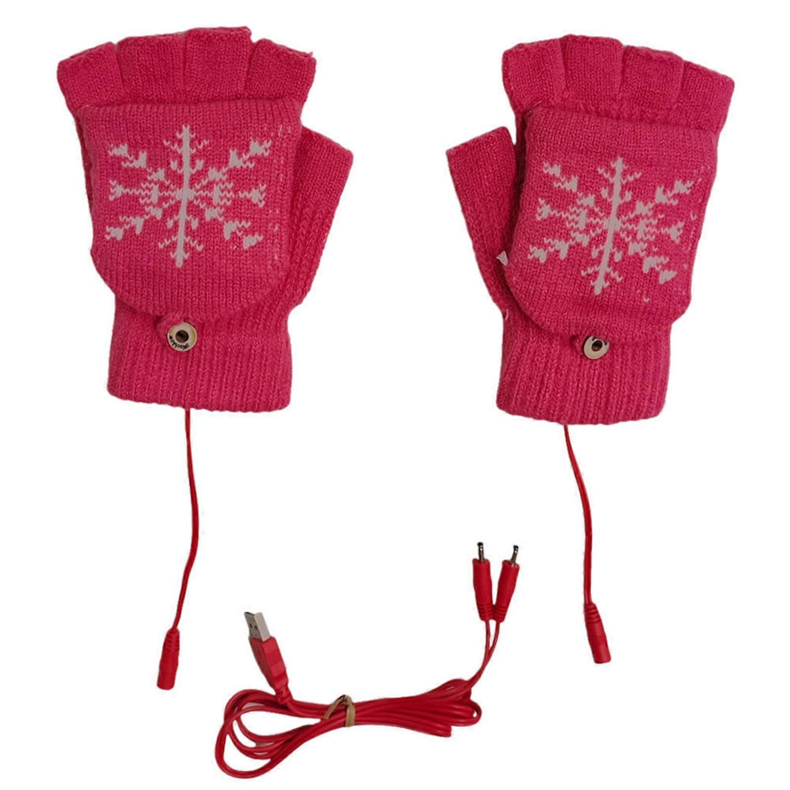 All Gender Warm Gloves USB Connection Ergonomic Finger Access Cold Security Polyamide Fabric Pink red