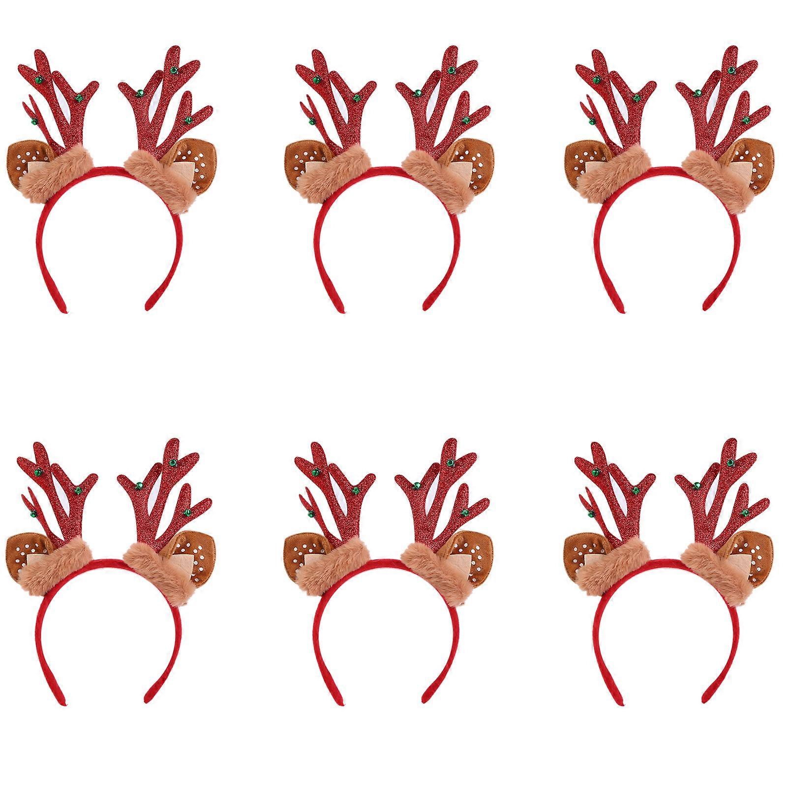 Set Of 6 Festival Reindeer Antler Headbands Christmas Reindeer Antler Headbands Hair Accessory For Kids And Adults Red