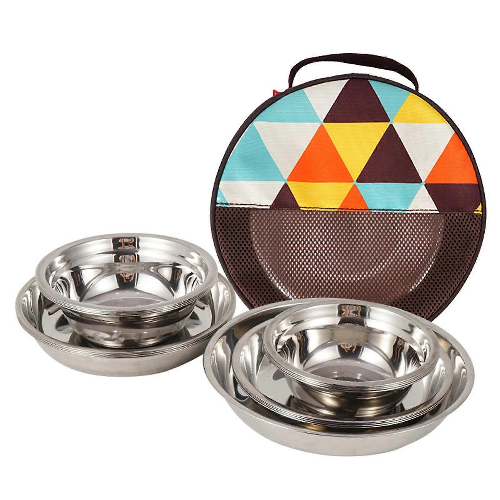 Set of 17 Stainless Steel Picnics Tableware Dishwasher Safe Dinnerwares Portable Plates for Camping and Outdoor Meals Multicolor