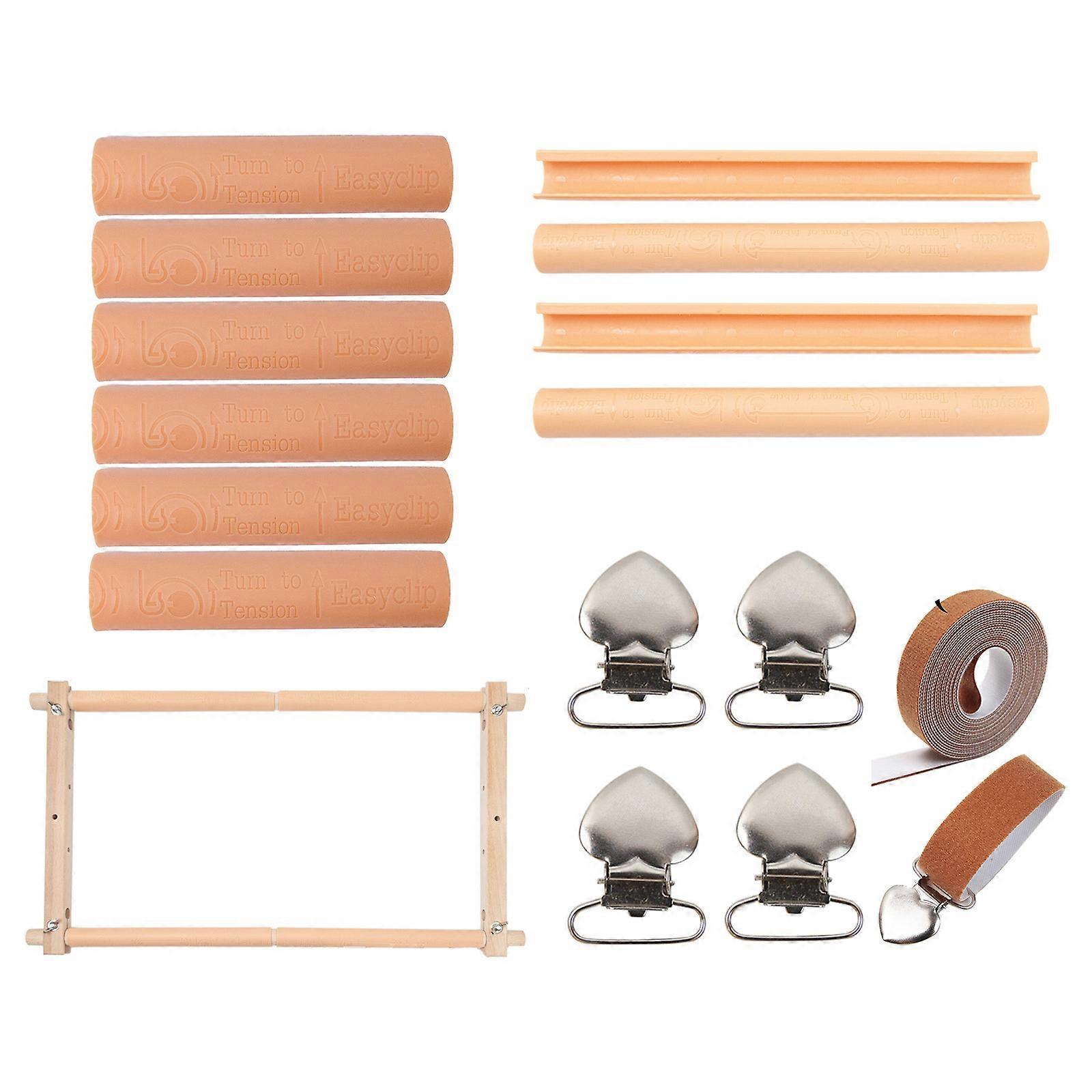 Adjustable Embroidery Clip on Frame with Plastic and Metal Clamp Wood Stitching Hoop For Stitching Embroidery Project Multicolor