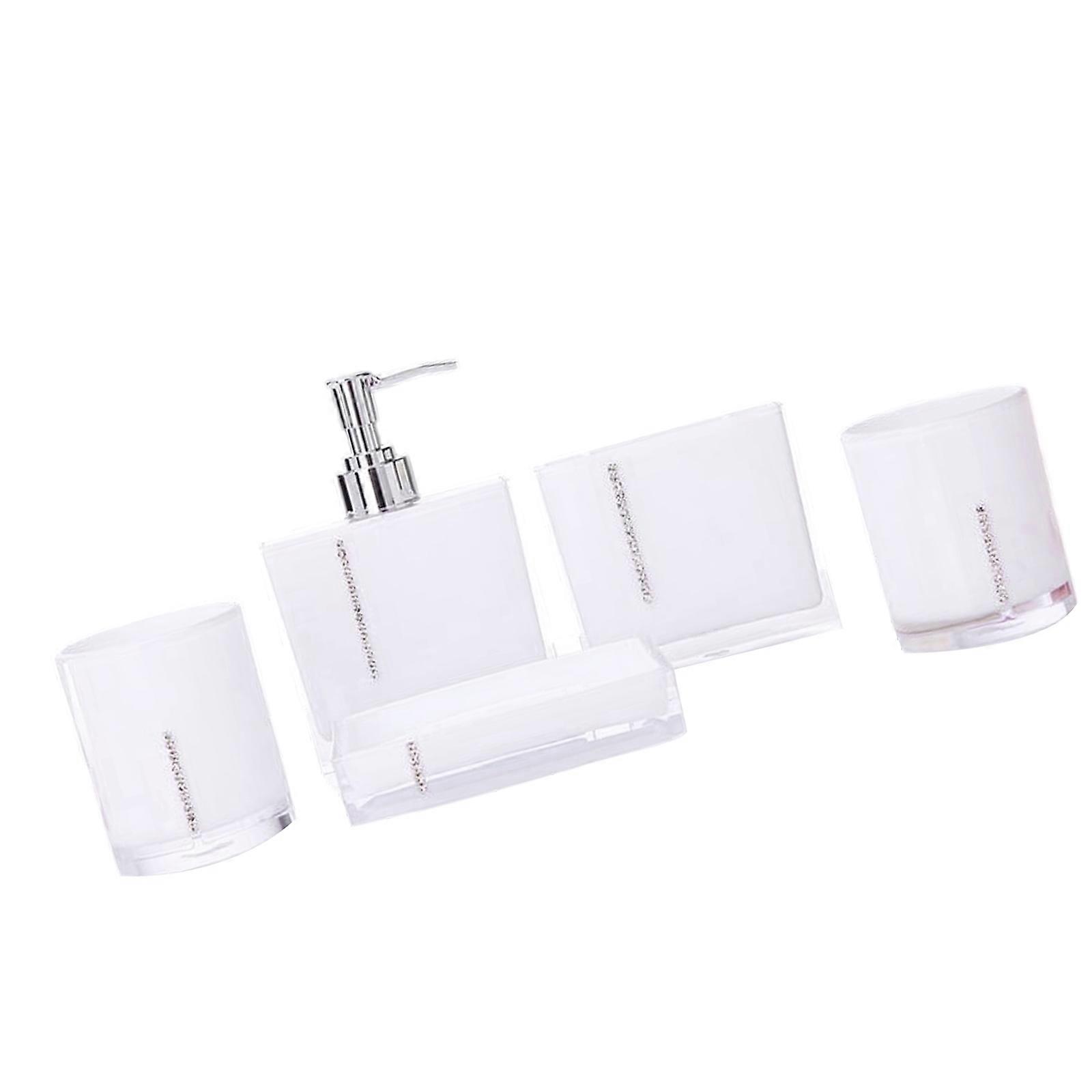 5Pcs Elegant Acrylic Bathroom Storage System Crystal Inspireds Toothbrush Holders Soap Dispenser Vanitys Set With Tumblers Cup White