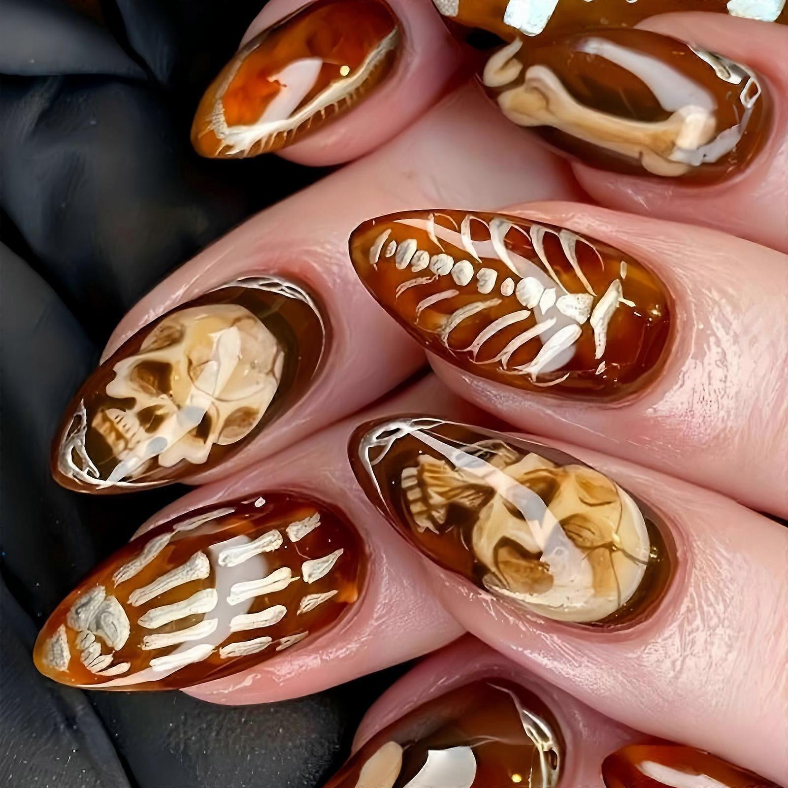 Punk Skull False Nail For Halloween Gothic Press On Nail Easy Apply ABS Build Fake Nail Costume Accessory 24pcs Multicolor
