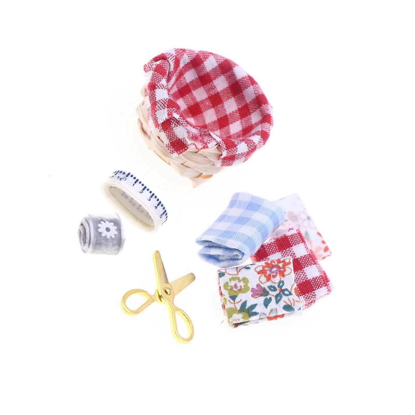 Miniature Sewing Kits For Doll House With Polyester Fabric And Sewing Accessories for Children Role Play Craft Activity Multicolor