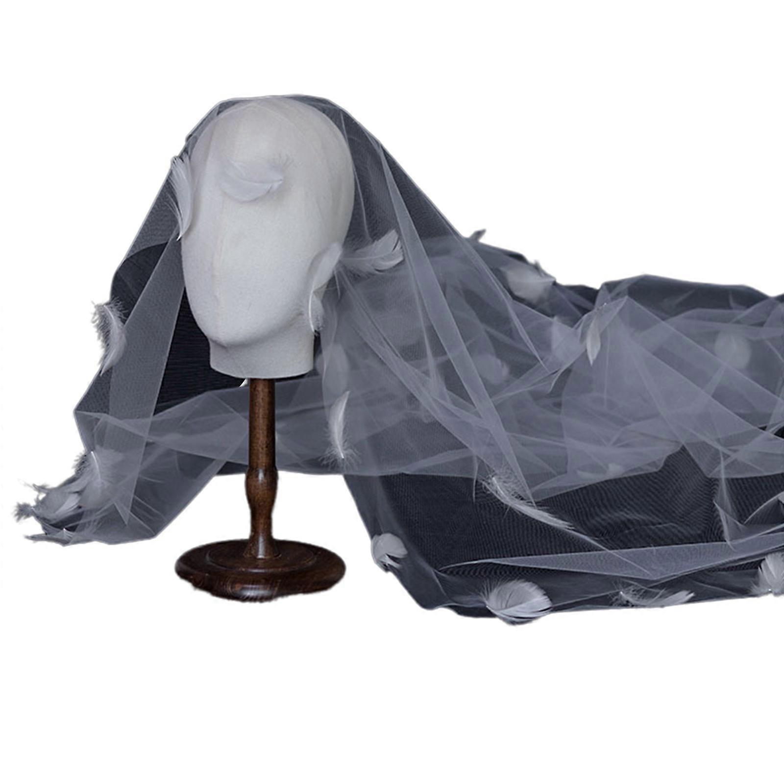 Oversized Bridal Layered Veil with Feather Wedding Celebrations Tulle Marriage Bridal Wedding Party Photography Veil Multicolor