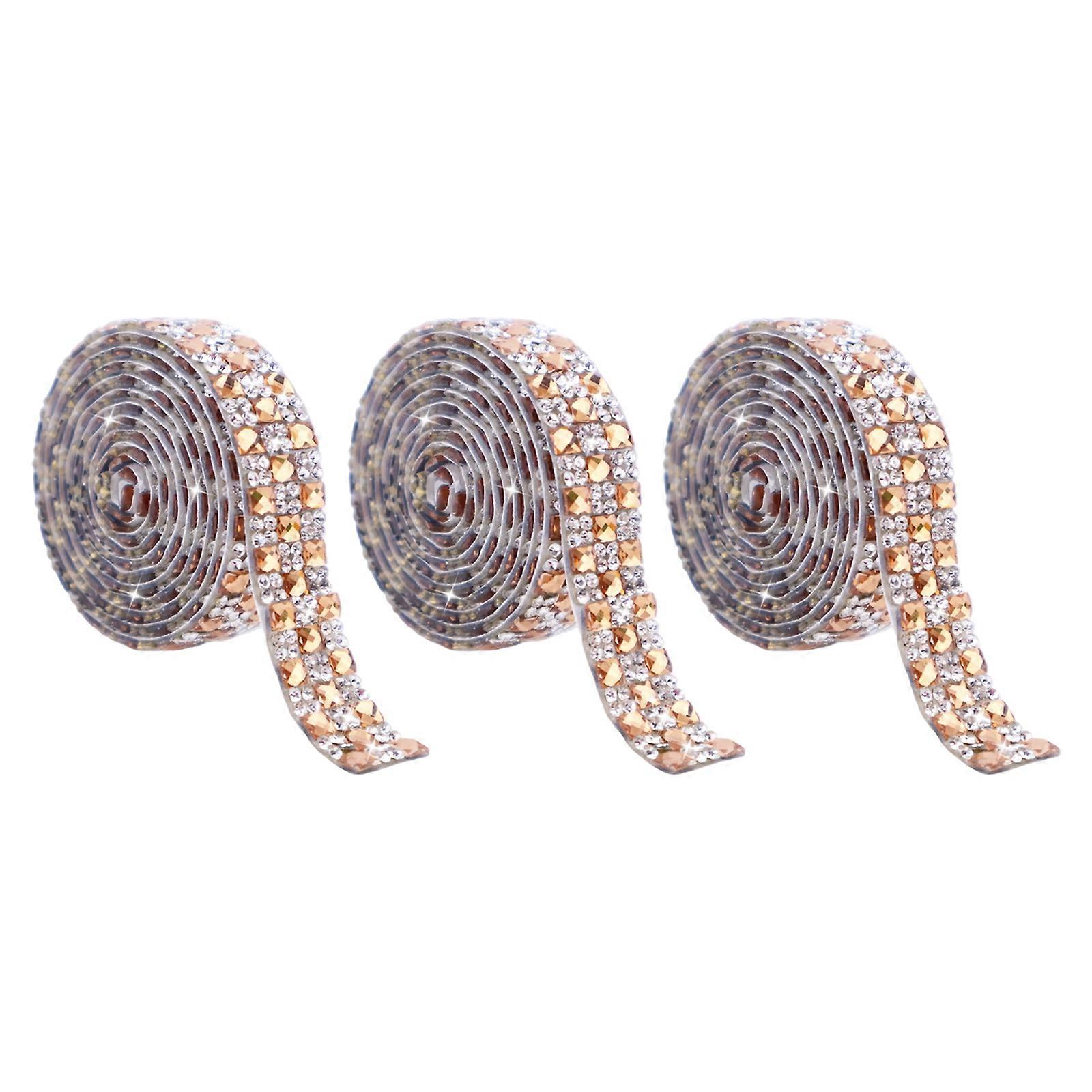 Selfs Adhesive Rhinestones Ribbons,Rhinestones Strips,Crystal Rhinestones Ribbon Roll Sticker for Fabric Car Decors crystal yellow
