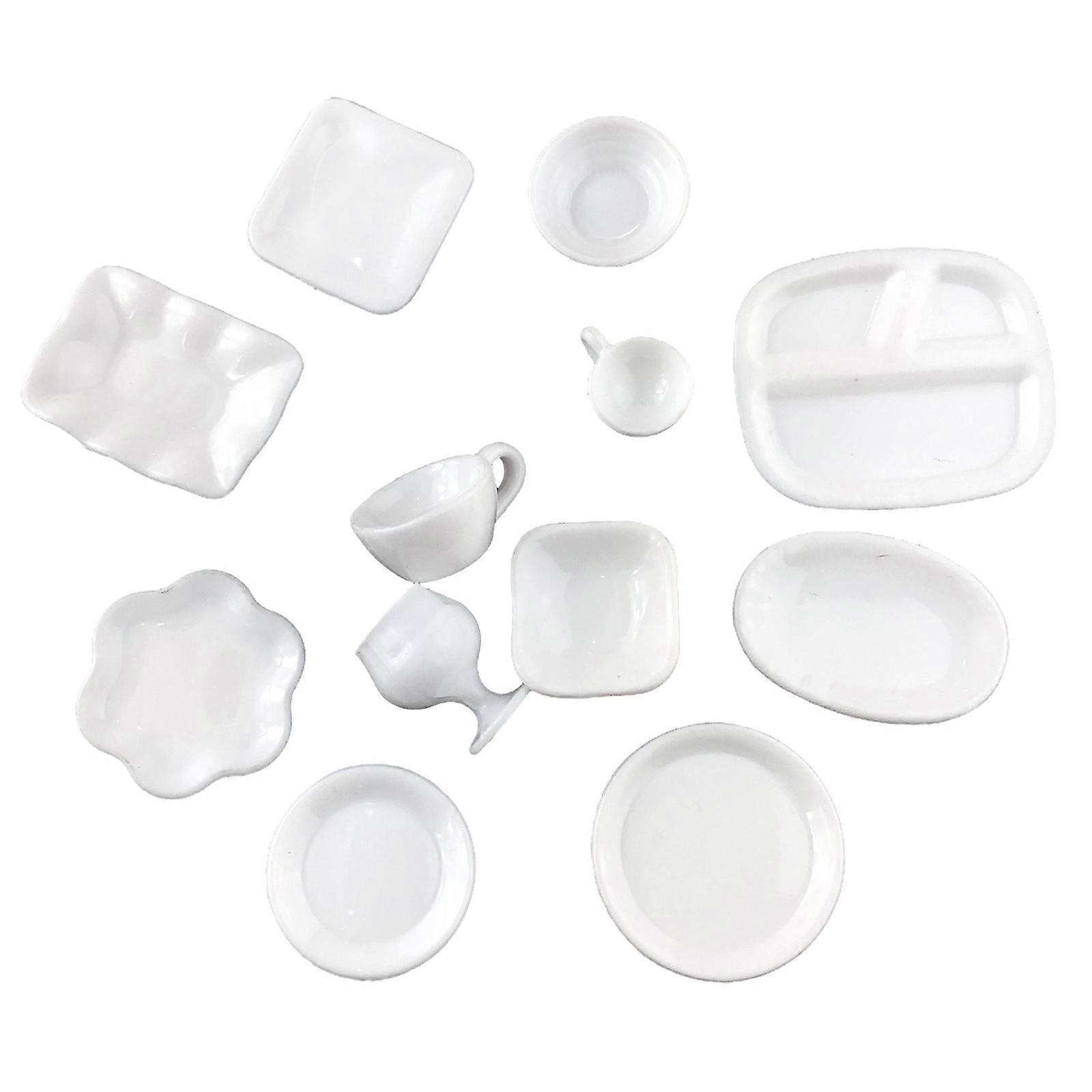 1/12 Miniature Kitchen Appliances Model Dollhouse Furniture Model Toy Resin Trays Bowls Tableware Plates for Children Multicolor