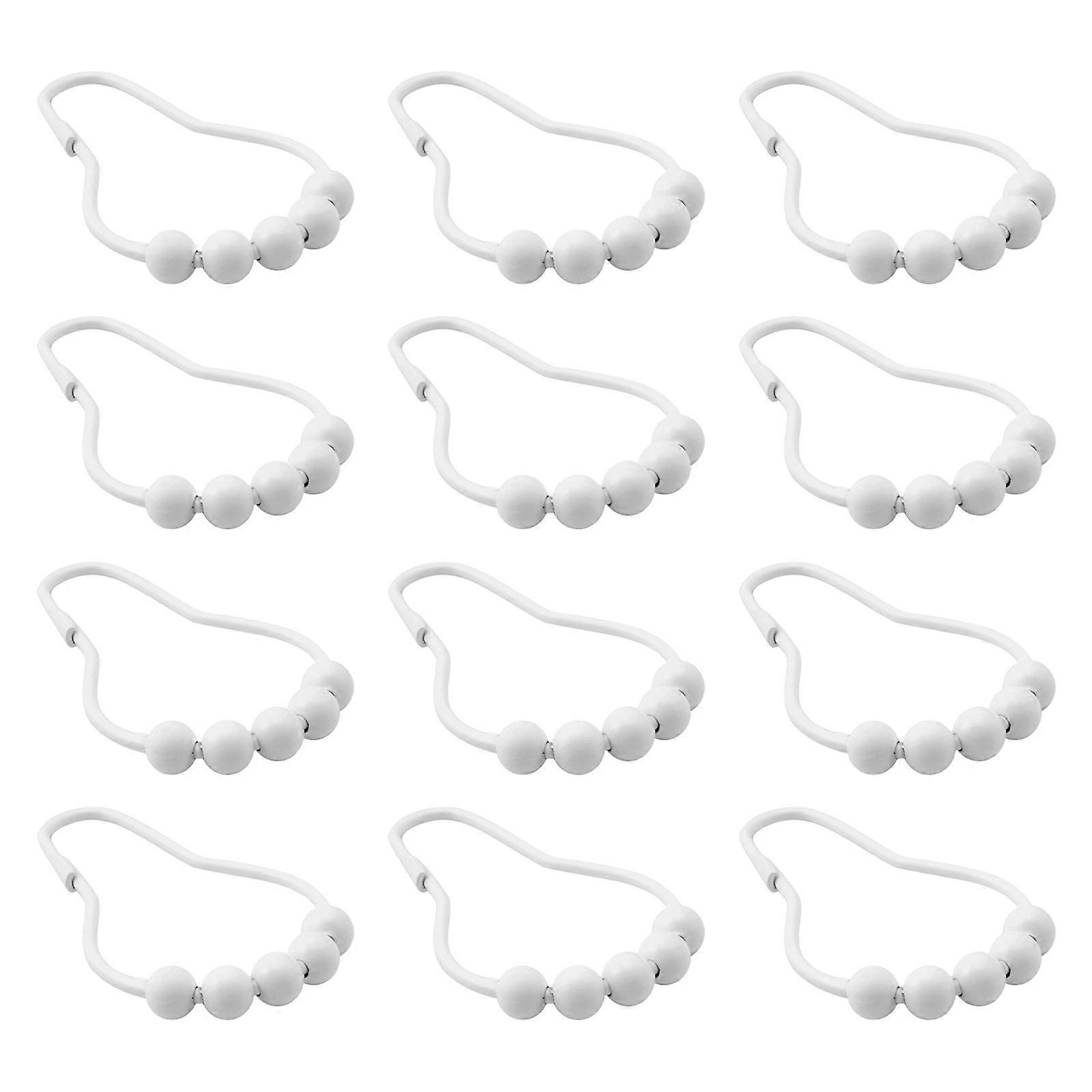 Stainless Steel Roller Bead Shower Curtain Hooks Sliding Bathroom Hardware Shower Rod Hook Hanger for Bath Drape White