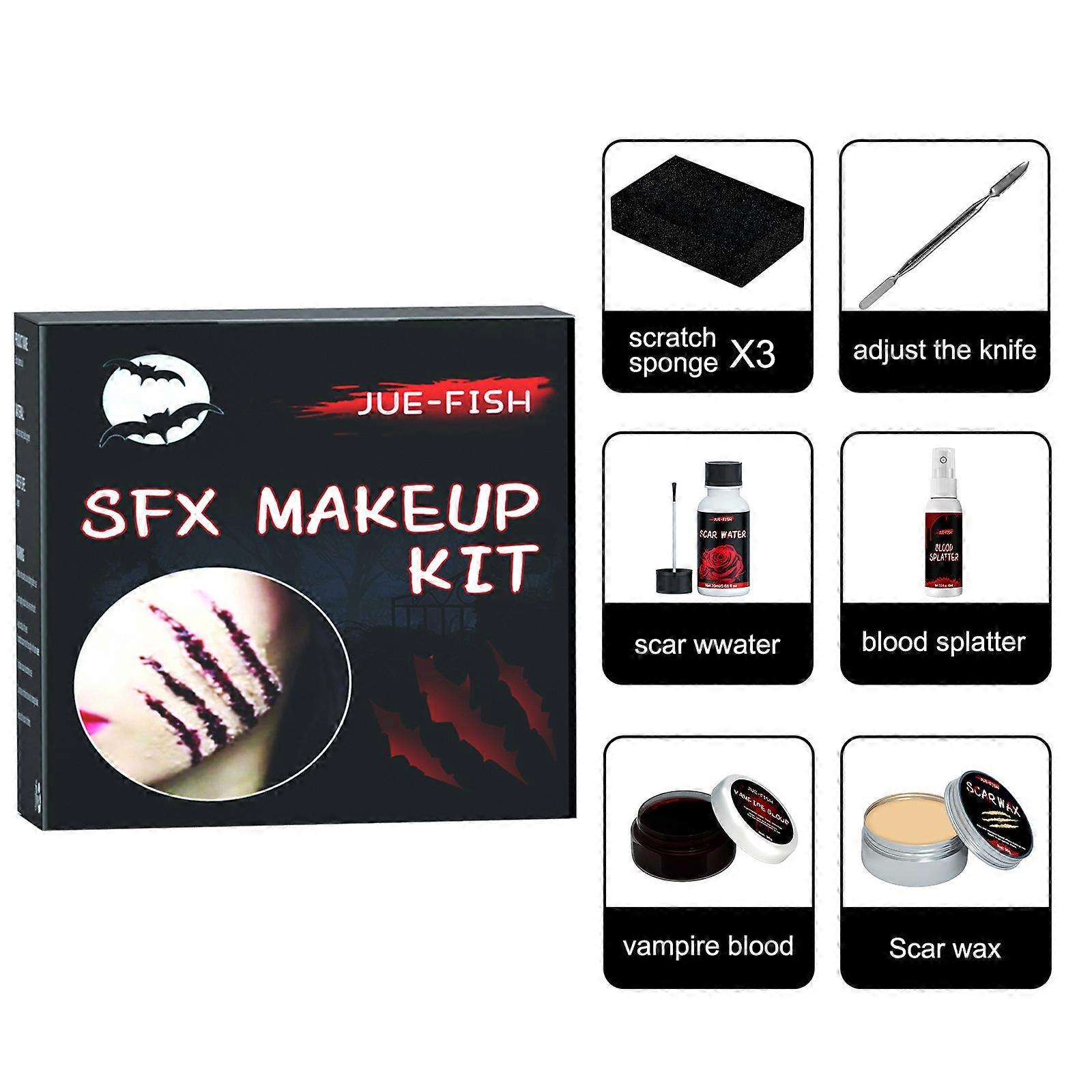 Squirt Fake Blood Makeups Fake Blood Spray Washable Fake Blood Set, Splatter Liquid Blood for Clothes, Skin & Eye Drops halloween makeup bag