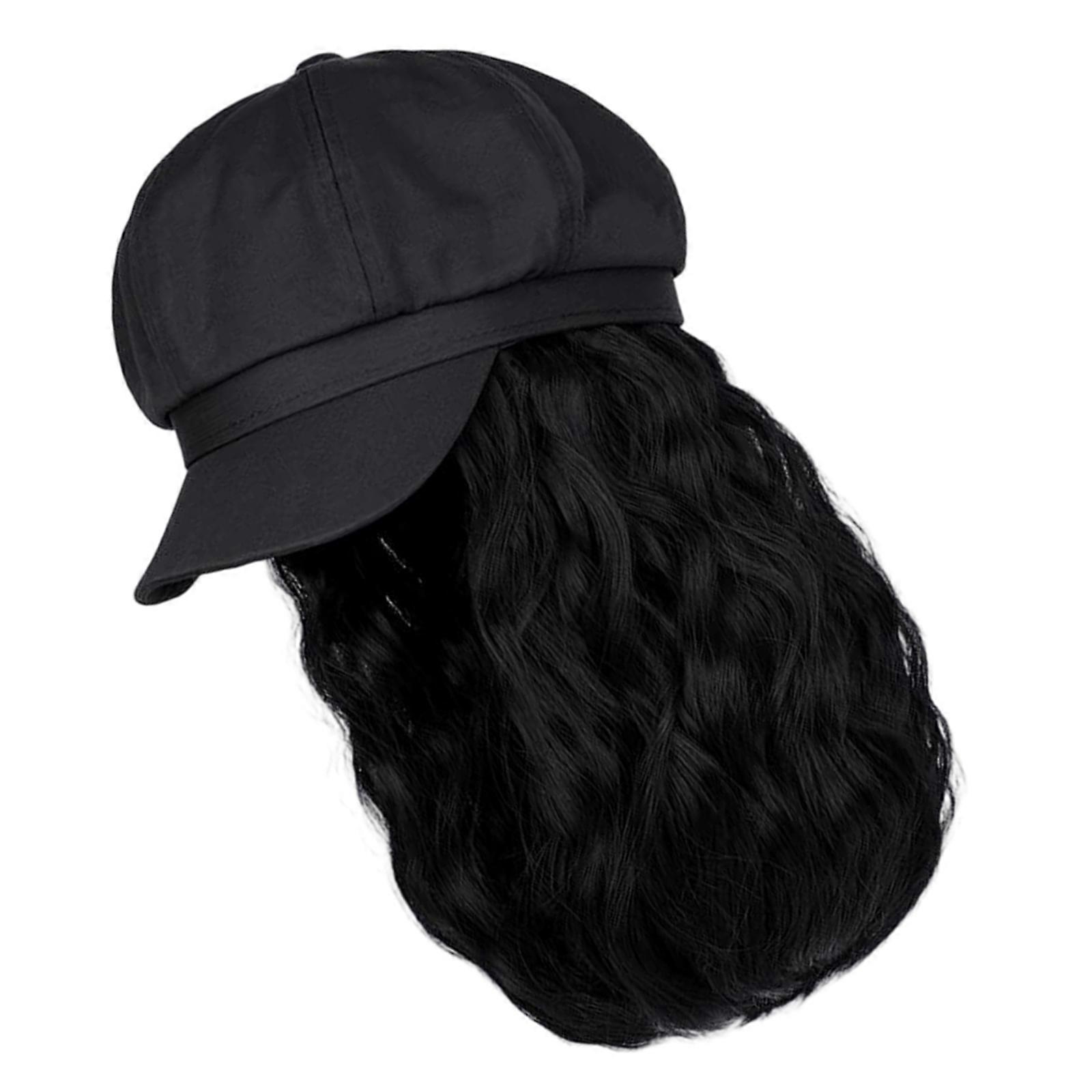 Curly Wigs And Beret Synthetic Fibers Natural Black Curls For Quick Hairstyle Change Natural Black