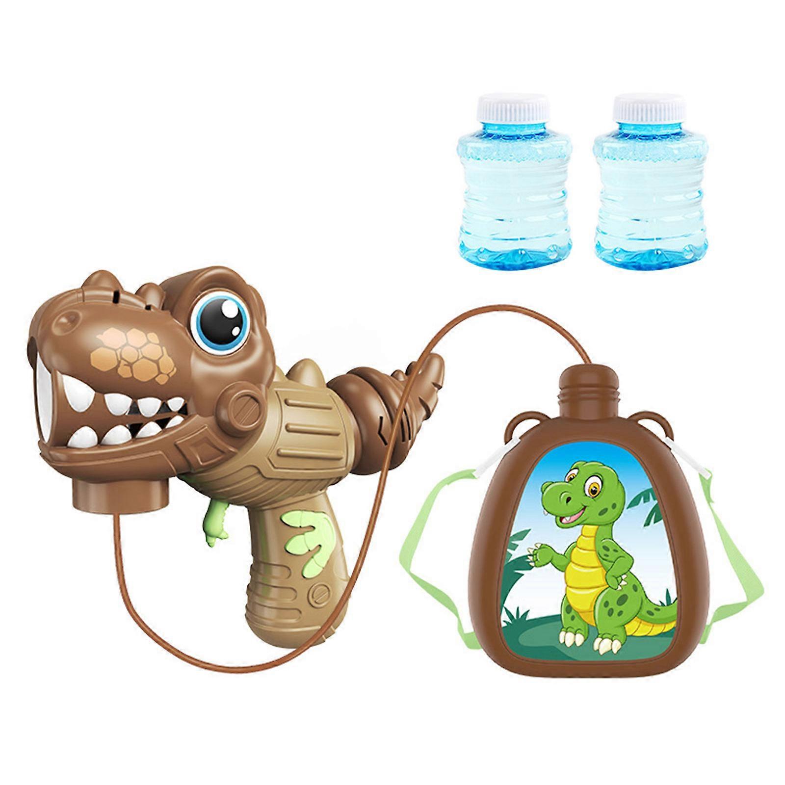 Features: 8-hole Cute Bubble Guns: Cute dinosaur-shape will make babies love it- more. Comfortable Feel: Non-slip and easy to grasp, the size is suitable for kids' small hands, the grasp is round and without burrs. Super Fun Toy: Perfect Bubble Toy and Family and Outdoor Activity Toy~. Electric Foaming Function: Easy and labor-saving, just pull the trigger, convenient and fast. You can choose the backpack-type, which has a larger capacity and children can -play all day. Specifications: Material: Plastic Size: Approx.20.5x7x20cm/8.07x2.76x7.87inch Backpack Size: Approx.11x13.5cm/4.33x5.31inch Color: Green, Brown(optional) Package Includes: Package 01/02 Includes: 1x Bubble Blower Package 03/04 Includes: 1x Bubble Blower 1x Backpack note: 1.Please allow 1-2cm errors due to manual measurement, make sure that you do not mind before you order. 2.Due to the differences between different monitors, the picture may not reflect the actual color of the item. 3. No batteries include.