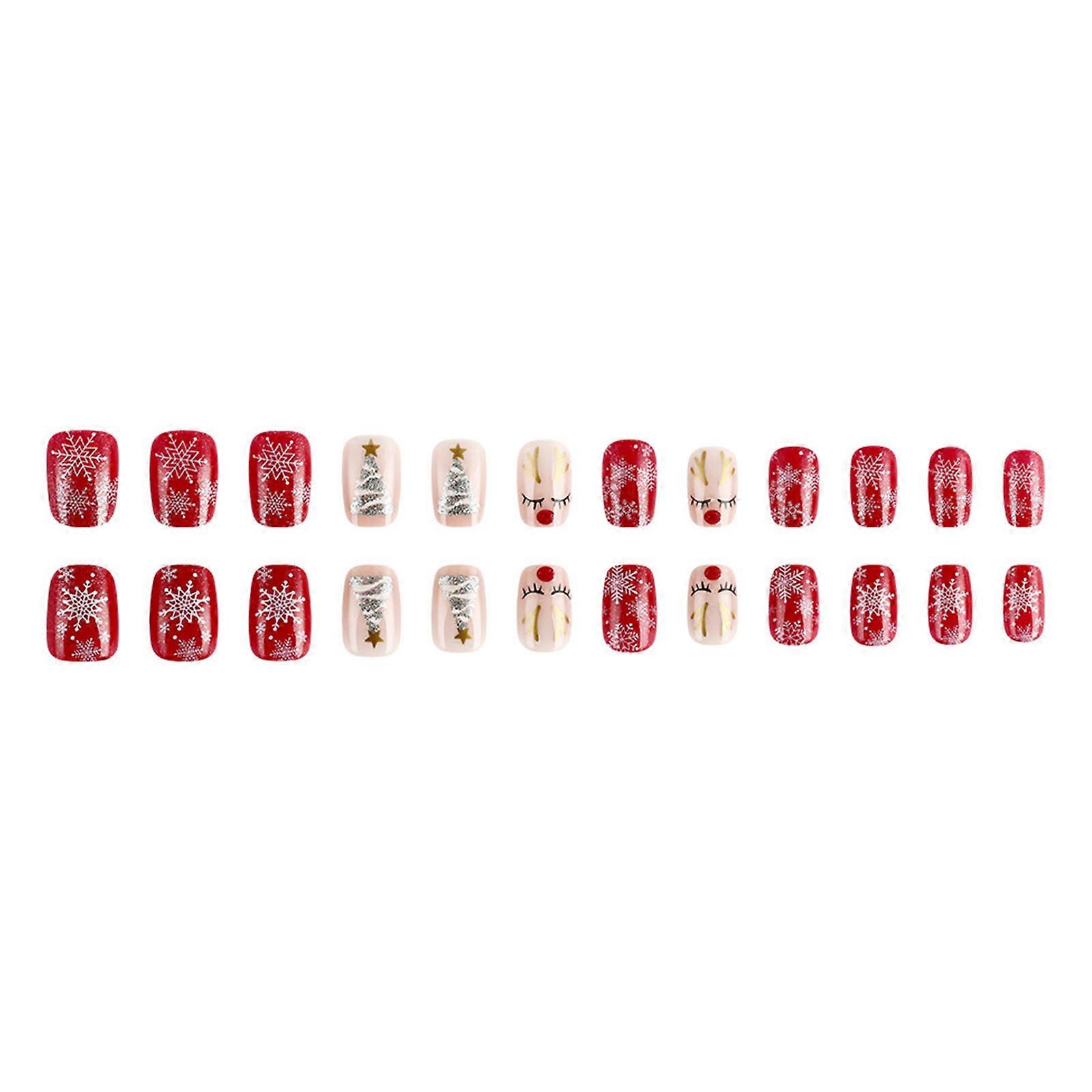 Press on Nail Short Square False Nail Christmas Tree Nail Manicure Decoration Nail Art Accesories For Easy Application Multicolor