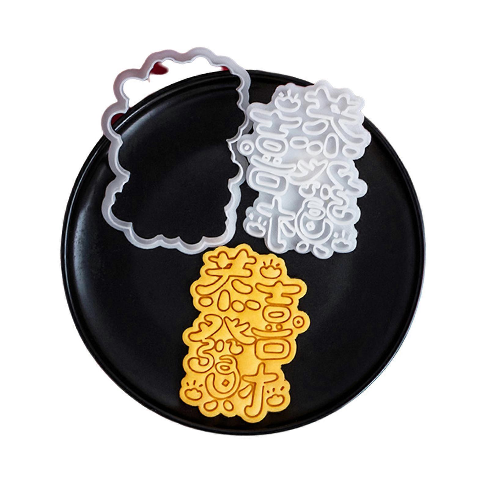 Plastic Biscuits Mold Cookie Stamps New Year Blessings Cookie Cutters Fondant Cake Mold Kitchen Pastry Baking Tool Multicolor