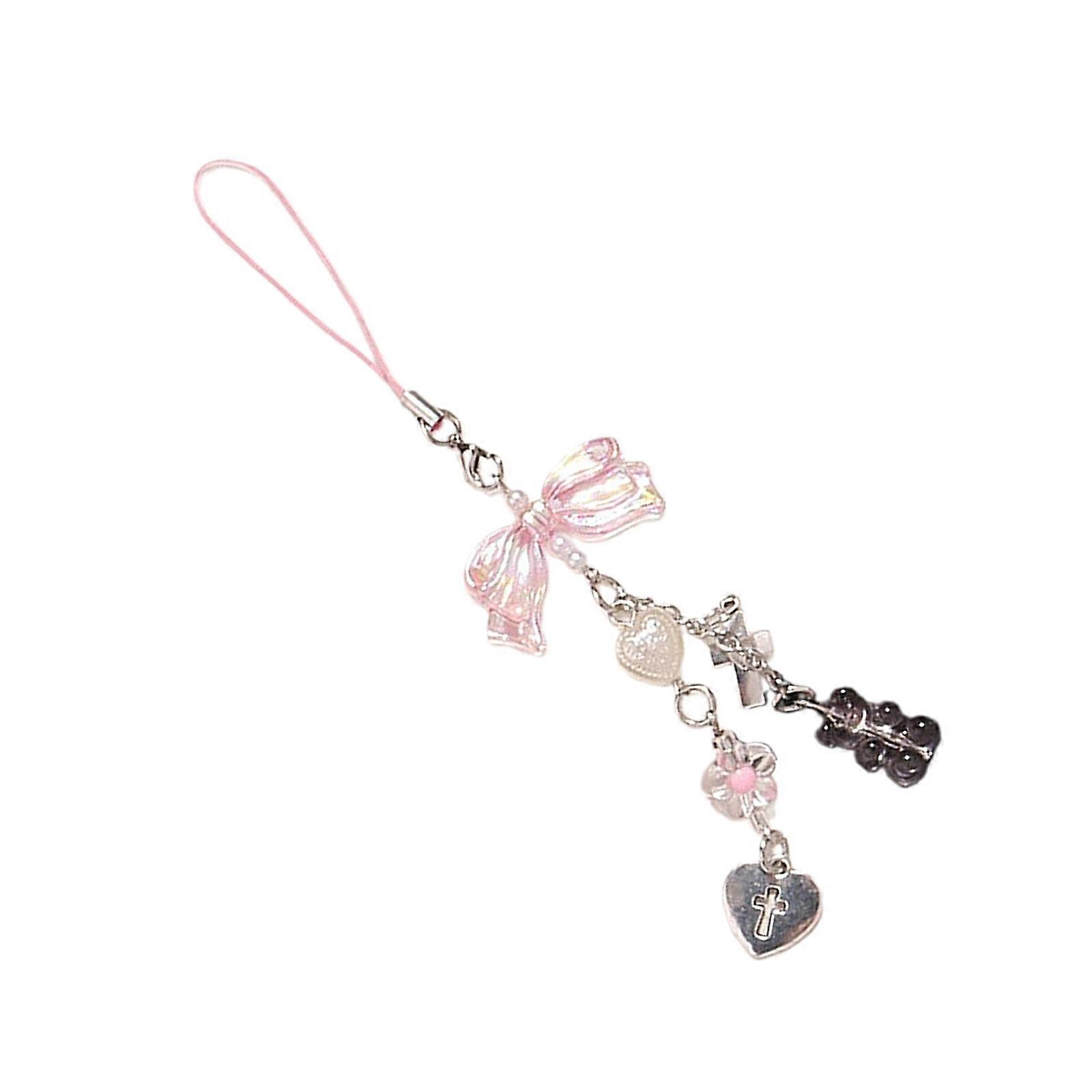 Stylish Acrylic Bowknot Phone Charm Adorable Bowknot Keychain Phone Strap Bowknot Phone Jewelry Gift for Fashion Lovers Pink
