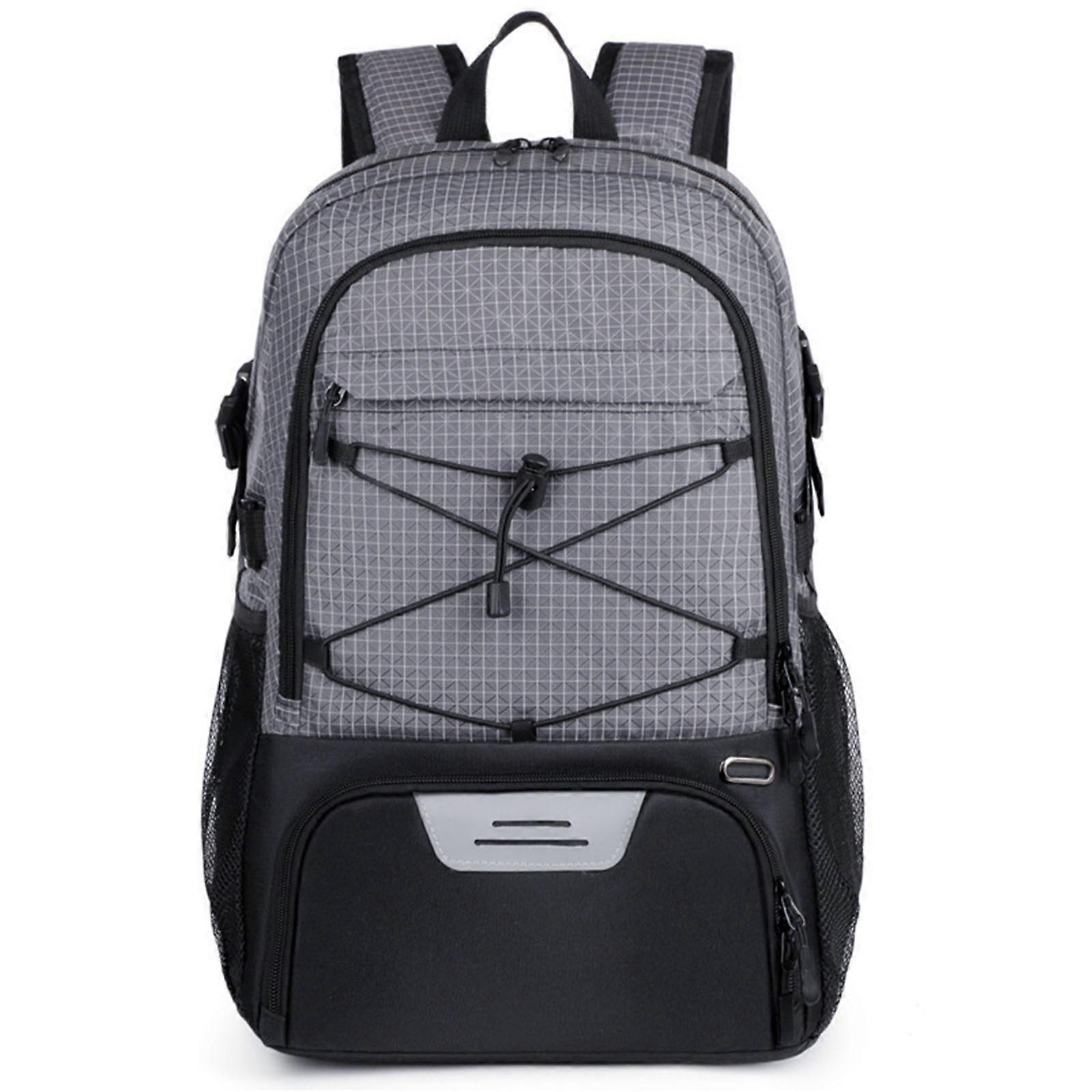 Features: Light weight and spacious, this sports backpack weighs just 0.54kg yet holds basketballs, soccer balls, and outdoor gear for 2-4 day trips, making it ideal for athletes and anyone seeks multifunctional sports backpacks. Engineered with breathable Oxford cloth, widened padded shoulder straps, and shock absorption back cushions, this water resistant hiking backpack features Oxford nylon fabric for abrasion resistance and weather protect. Designed for camping enthusiasts, and adventure travelers who needs multifunctional sports bag for daily workouts or extended trekking. Perfect for carrying sports equipment to practice, essential for hiking trail, or casual outings. Widely used for outdoor sports like mountaineering trail, hiking, camping, trekking, other scenarios – its abrasion resistant fabric withstands hard surfaces while keep gear dry in light rain. Its compartmentalized design organizes gear efficiently, while the scratch resistant exterior ensures durability – must have water resistant gym backpack for dynamic routines and travel gear management. Specifications: Color: Blue, Gray, Black, Component: Oxford Cloth, Nylon Cloth Size: Approx. 32x21x46cm/12.6x8.27x18.11in Weight: Approx. 600g Package Includes: 1Piece Fitness Backpack note: 1.Please allow 0-1cm error due to manual measurement. Be sure you donot mind before bid. 2.Due to difference between different monitors, the picture may not reflect the actual color