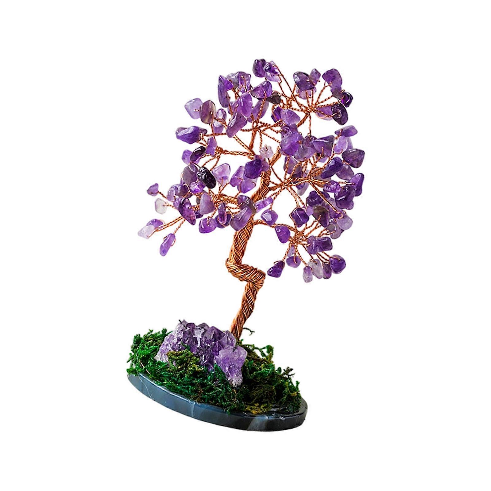 Lucky Crystal Money Tree Sculpture Gemstones Prosperity Ornament Home Office Desktop Decors Gift for Wealth and Fortunes Multicolor