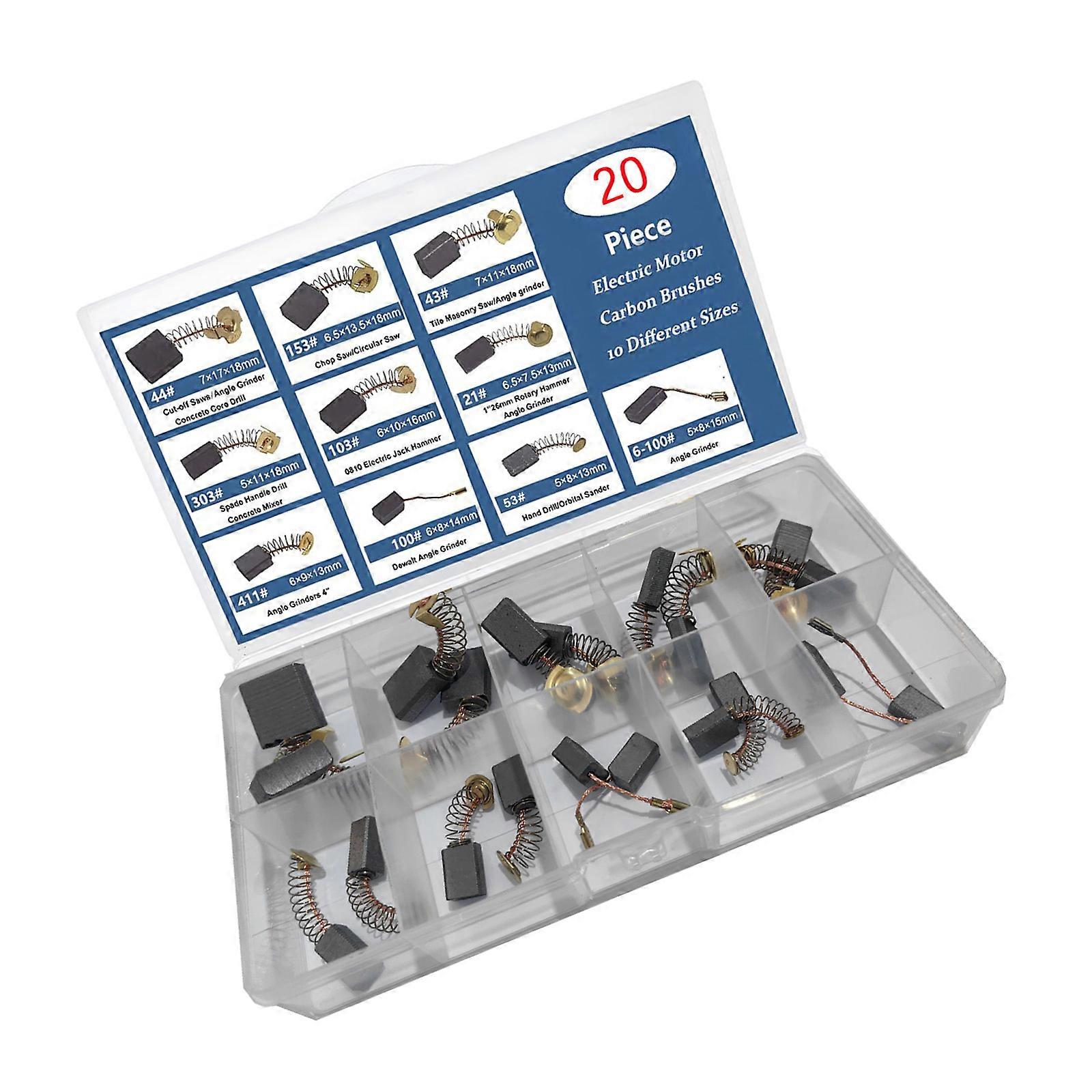 Electric Motor Brush Assortment 20pcs 10 Sizes Copper Alloyed Carbon Brushes for Industrial Equipment Maintenance Multicolor