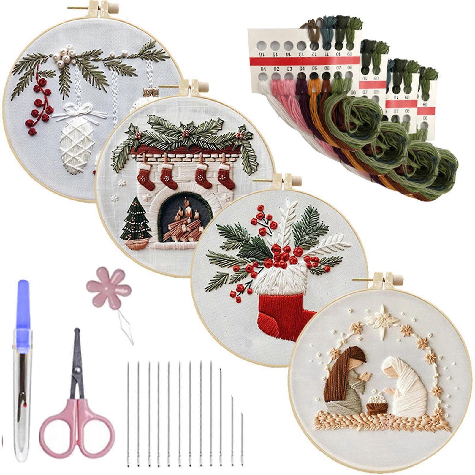 Embroidery Starter Kits Christmas Embroidery Set Embroidery Kits with Embroidery Hoop Crosses Stitching Kits Multicolor