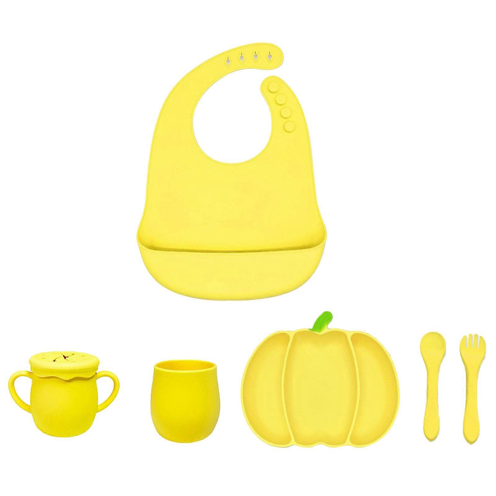 Pumpkin Feeding Set for Halloween Celebration Practical Kids Food Serving Tray Kitchen Dinnerware Suction Cup Plate Yellow