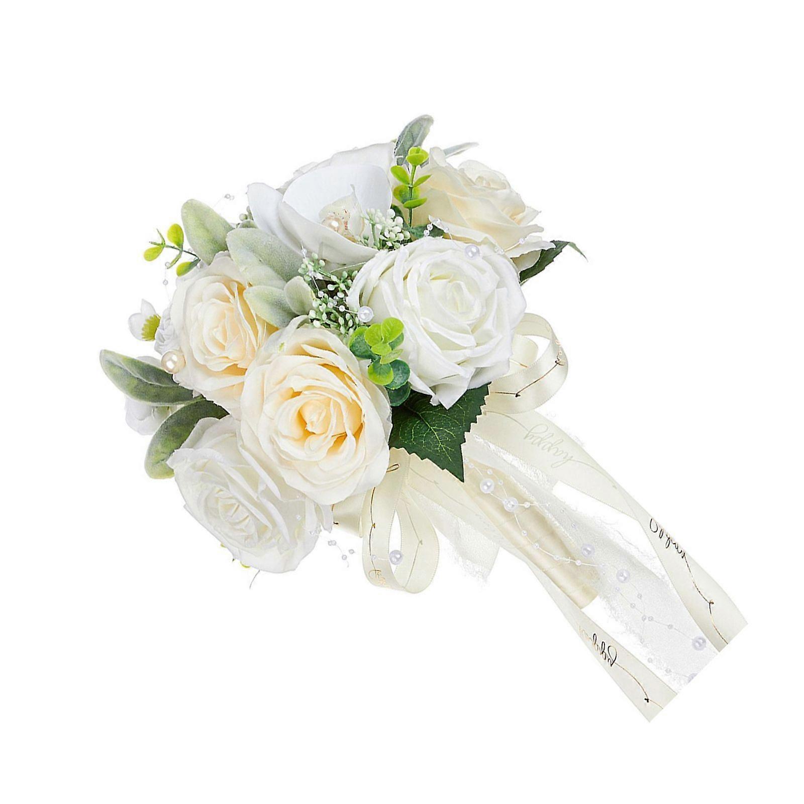 Wedding Bridal Bouquet, Bride Artificial Rose Flowers with Ribbon for Ceremony Anniversary Party Decoration Multicolor
