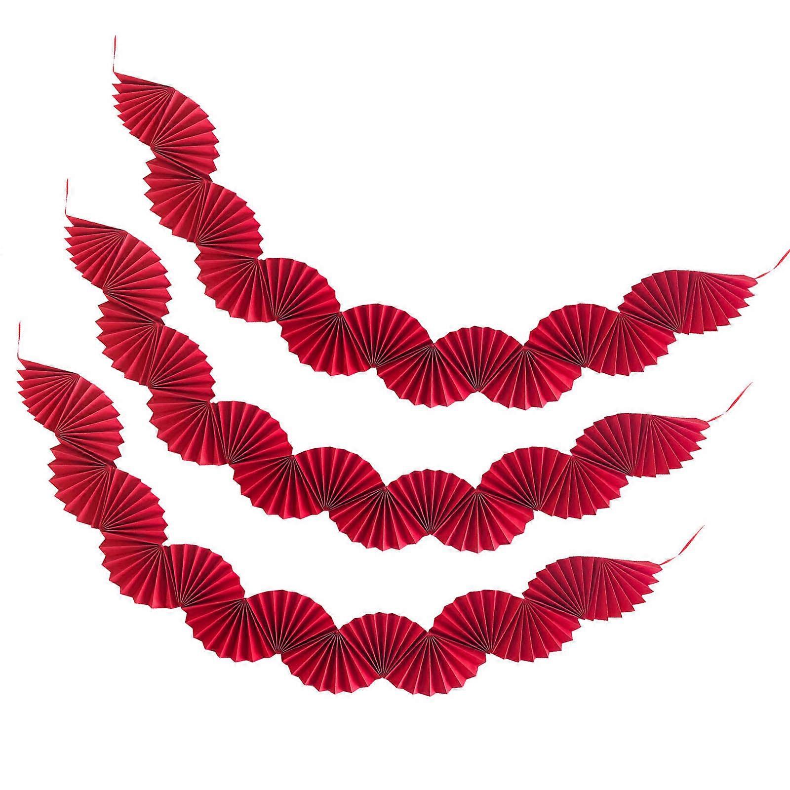 3pcs Elegant Hanging Flags Colorful Pull Flag Stylish Paper Fan Banners Unique Wedding Party and Home Decorations Red