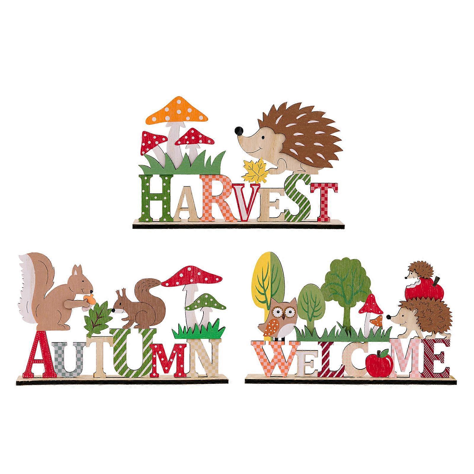 3Pcs Thanksgiving Wood Animal Statuettes Festives Holiday Decoration Lovely Animals Themed Figurines Embellishments Multicolor