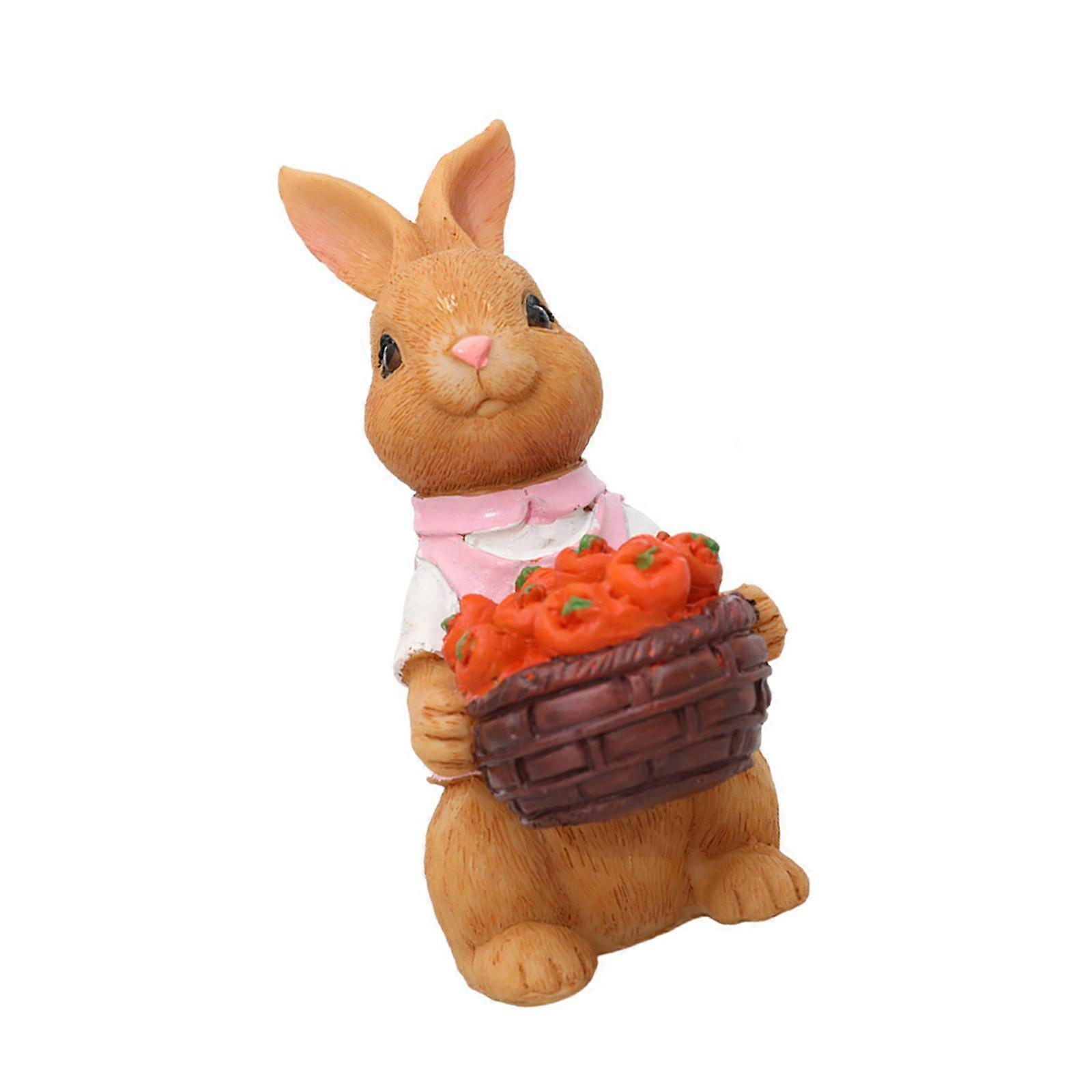 Easter Rabbit Decorations Spring Indoor Outdoor Decor Resin Rabbit Figurines Statue with Carrot Basket Tabletop Ornament Multicolor