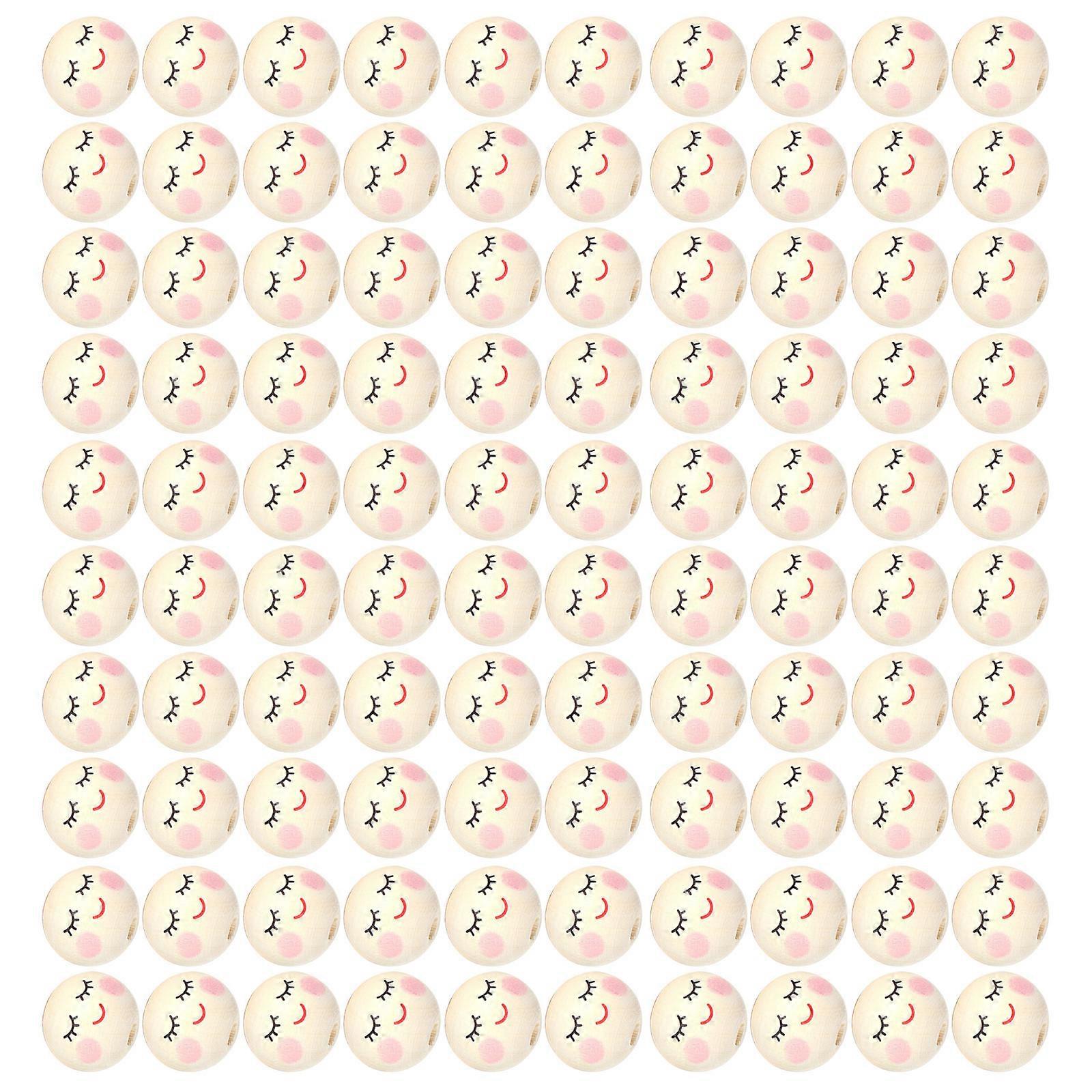 100Pcs Smiles Wood Beads Natural Wooden Beads for Crafting, Hole Round Wooden Smiles Face Beads Set for DIY Decorations Multicolor