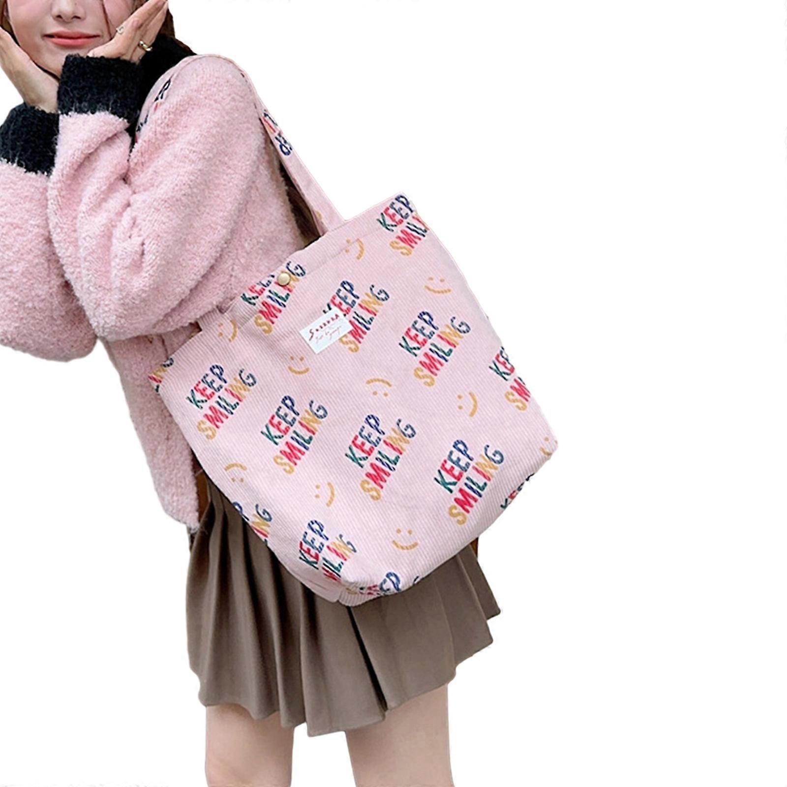 Shoulder Bag Shopping Bags Book Bags Large Capacity Trendy Bag for Girl Fashion Casual Corduroy Bags Versatile Handbag Pink