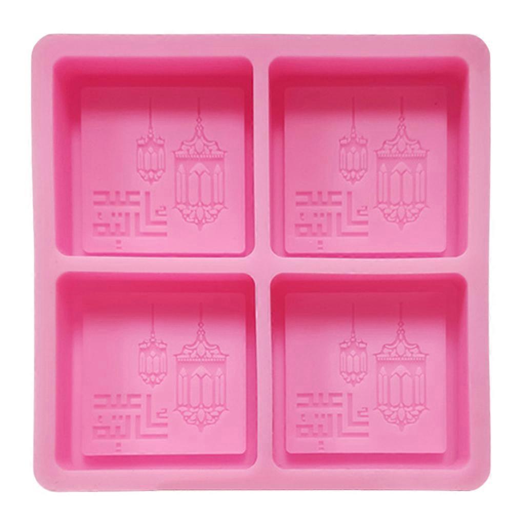 4 Cavities Silicone Molds Square Hanging Lights Pattern Handmade Soap Pastry Moulds Baking Tool for Eid Mubarak Festival Multicolor