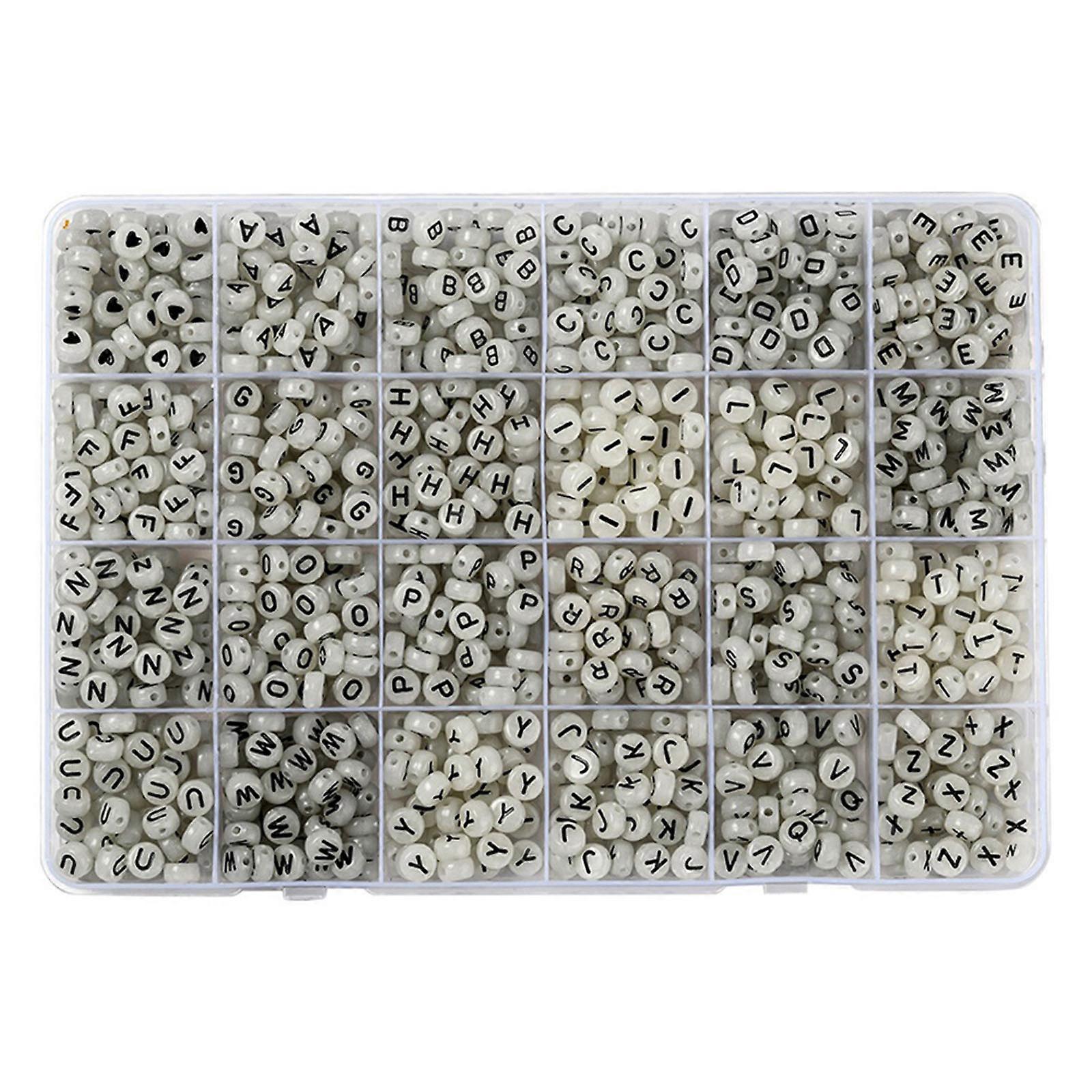 1500 Pieces 7mm White Round Luminous Acrylic Alphabet Letter Beads A-Z Letters Heart Pattern Beads for Jewelry Making Multicolor