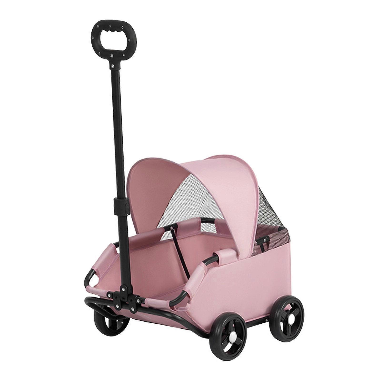 Small Dog Cats Strollers With Spacious Interior Metal Frame Foldable For Travel Shopping Trip Pink