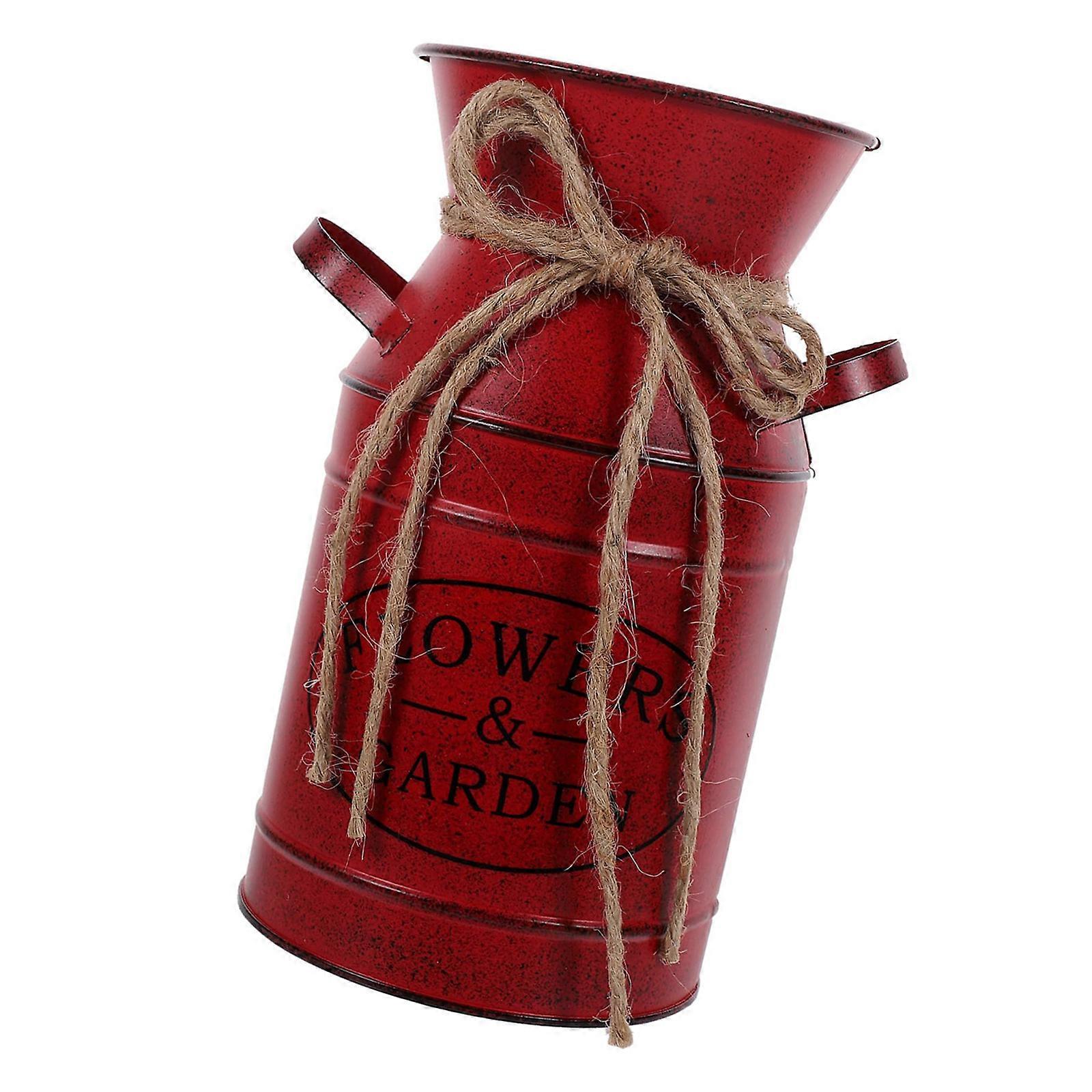 Antique Galvanized Iron Milk Can Flower Vases Farmhouse Decors For Living Room Bedroom Balconies Storage Jugs Pitcher Red