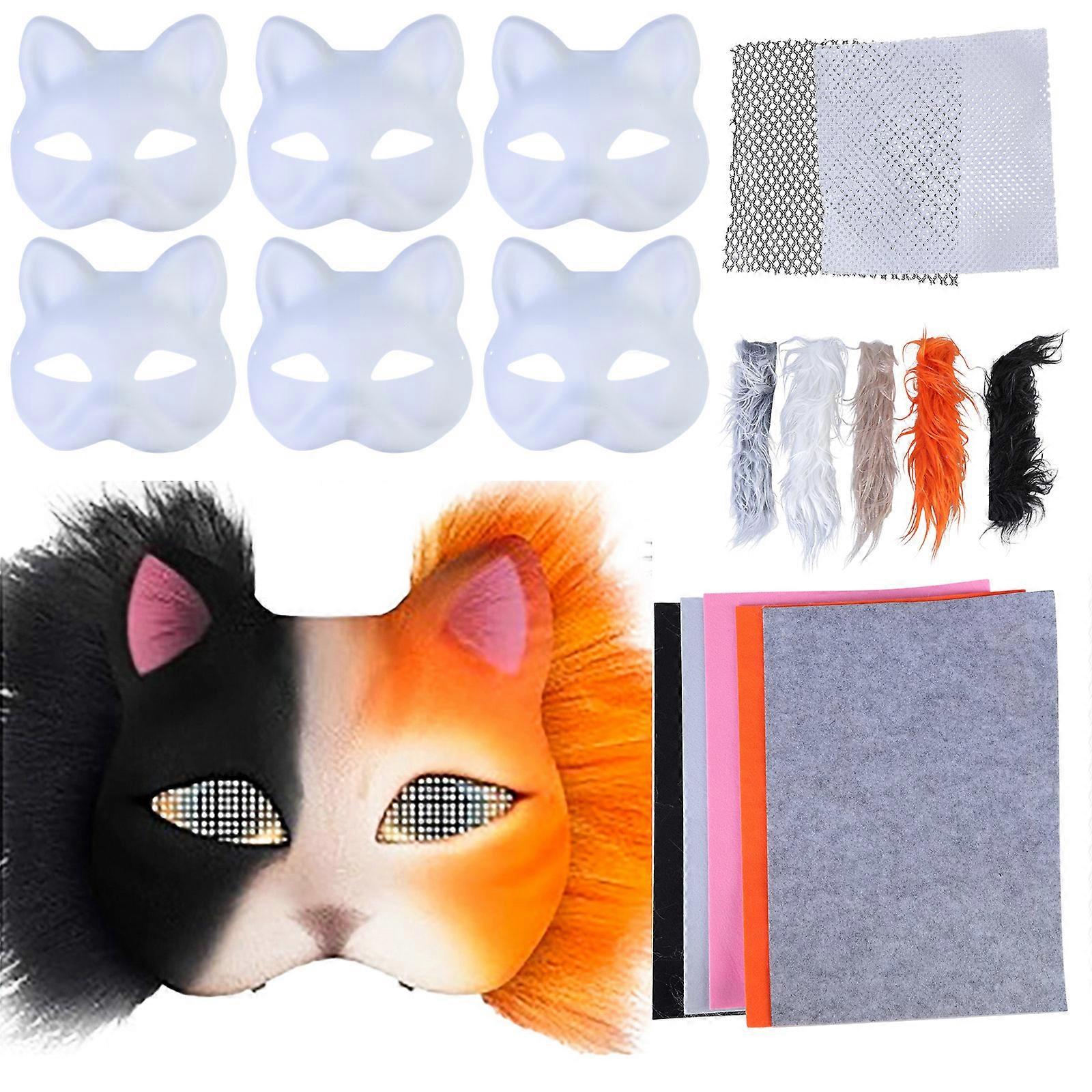 Animal Mask Kits Masquerade Mask Hand-Painted Cats Mask Unpainted Mask Anime Cosplay Mask Halloween Party Mask Multicolor