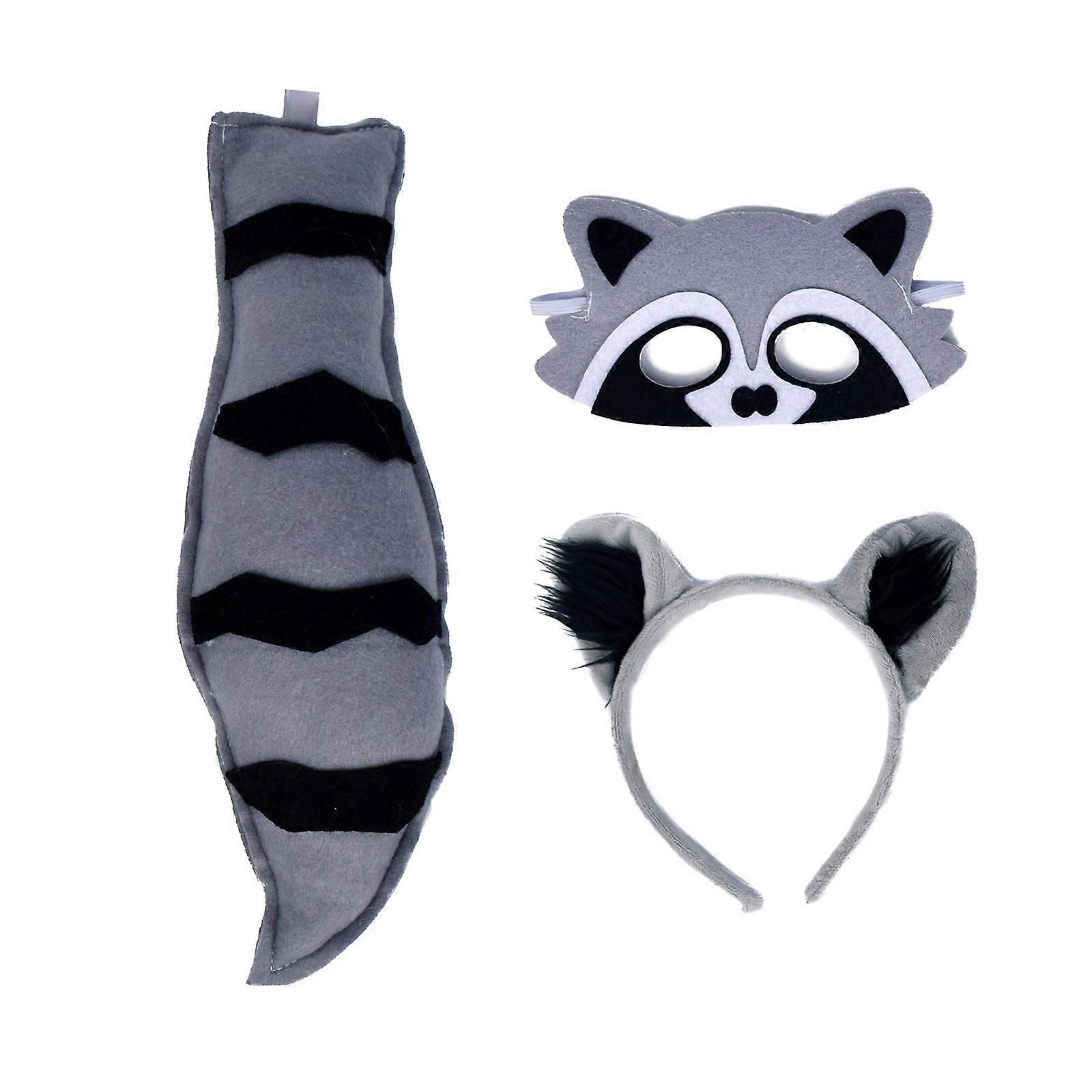 Raccoon Costume Set Ears Tail Mask Animal Fancy Costume Kit Accessories for Kids Girls Boys Halloween Cosplay Props Multicolor