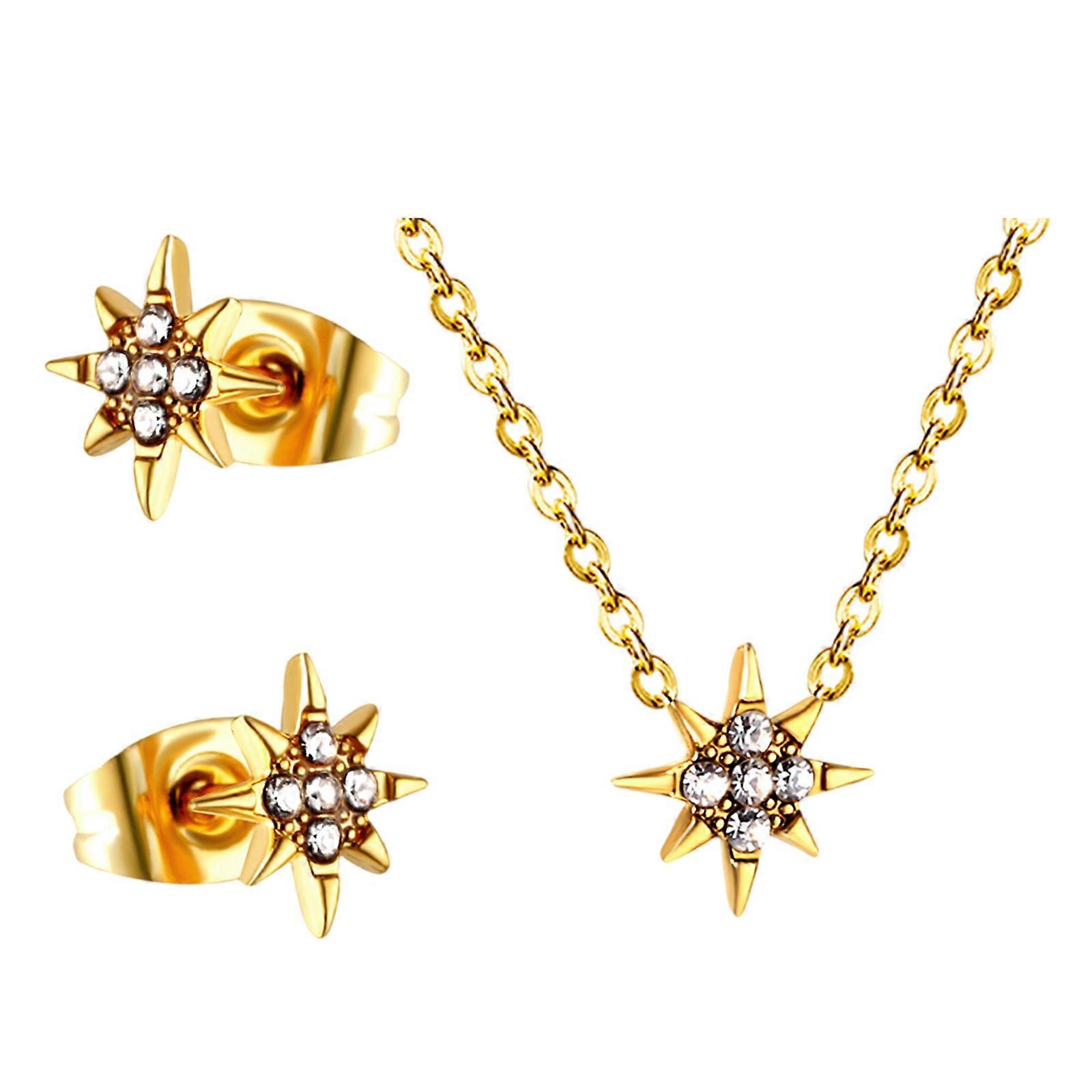 Versatile Necklace and Earrings Set for Women Stainless Steel Jewelry with White Diamonds Fashion Women Accessories Multicolor
