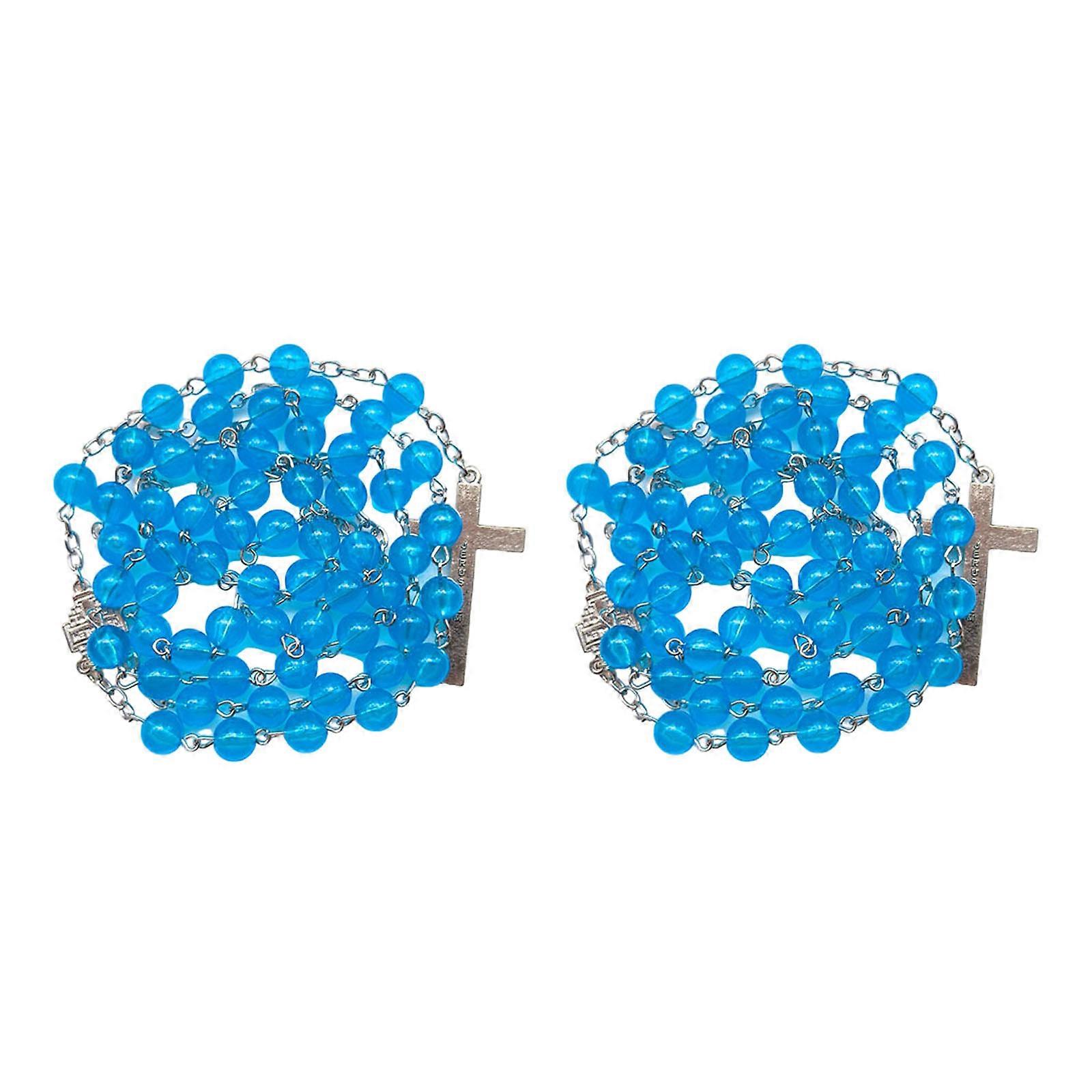 Durability Acrylic Luminous Blue Prayer Beads Necklace With Crucifix for Daily Wear Gifting Fashion Enthusiasts Multicolor