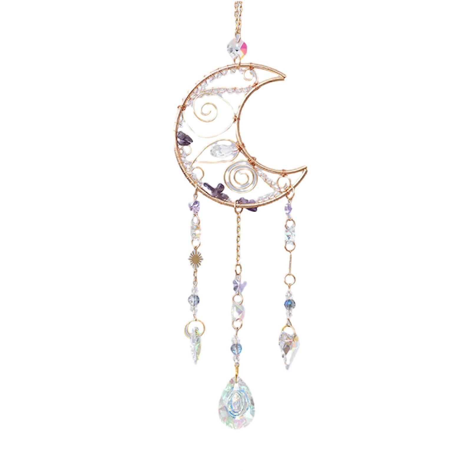 Natural Crystal Moon Pendant Decor Wind Chimes Sunshine Catchers Garden Decoration Hanging Ornament for Window Multicolor