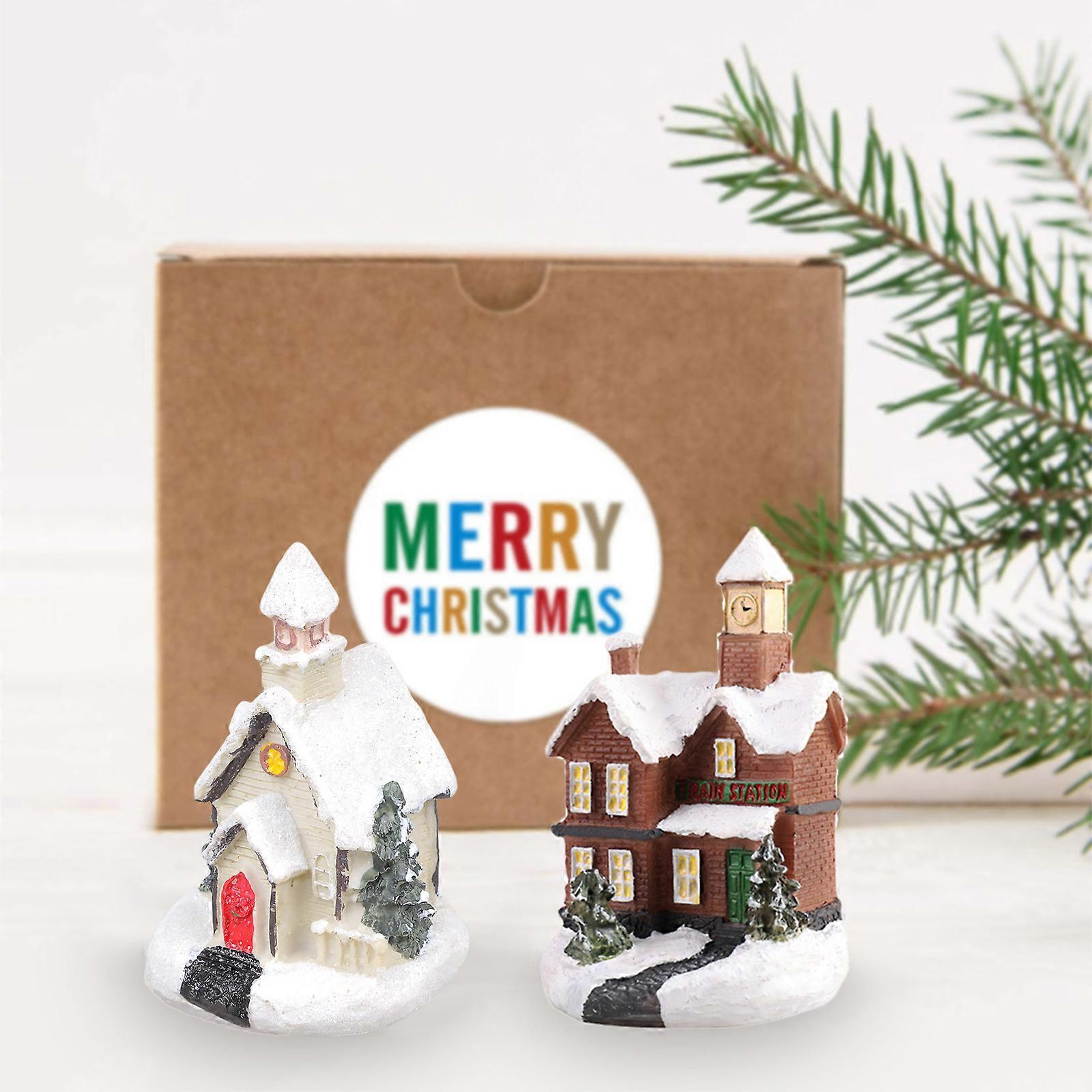 LED Light Christmas Snow Scene Village House Luminous Resin Ornament Figurine Decoration Crafts Xmas New Year Gift Multicolor