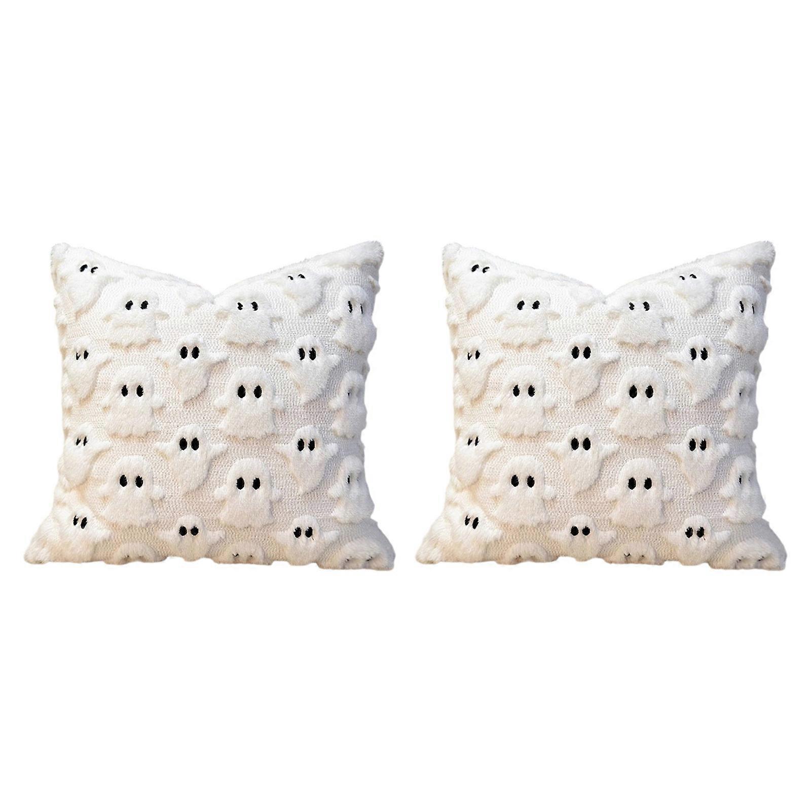 Festival Plush Pillow Cover for Holiday Decoration Bat and Specters Designs Various Decoration Item 45x45cm White