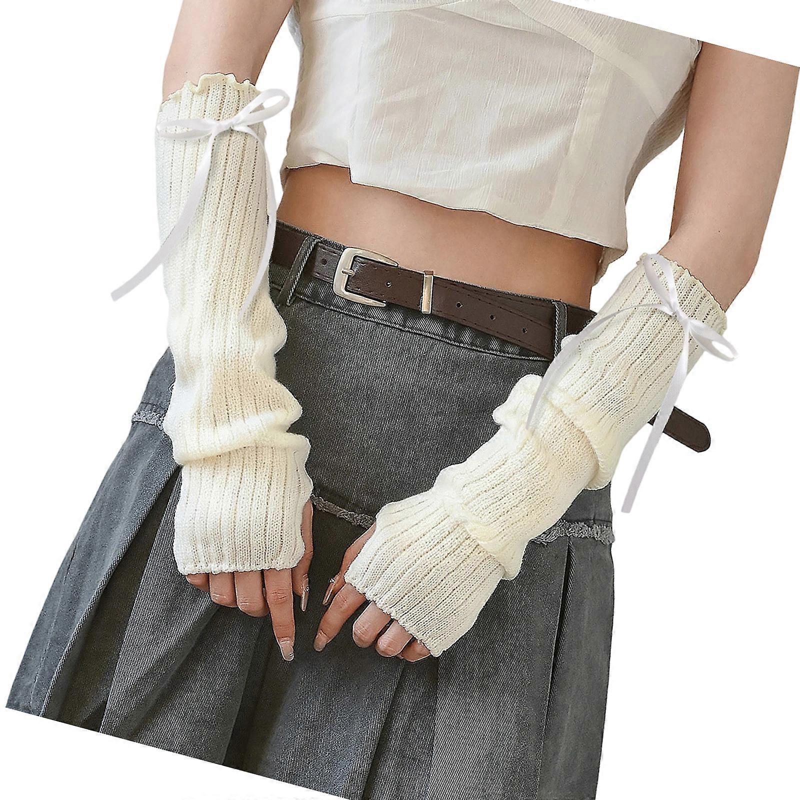 Cozy Knitted Arm Sleeves Half Finger Design Stretchy Oversleeve Acrylic Material Autumn Winter White